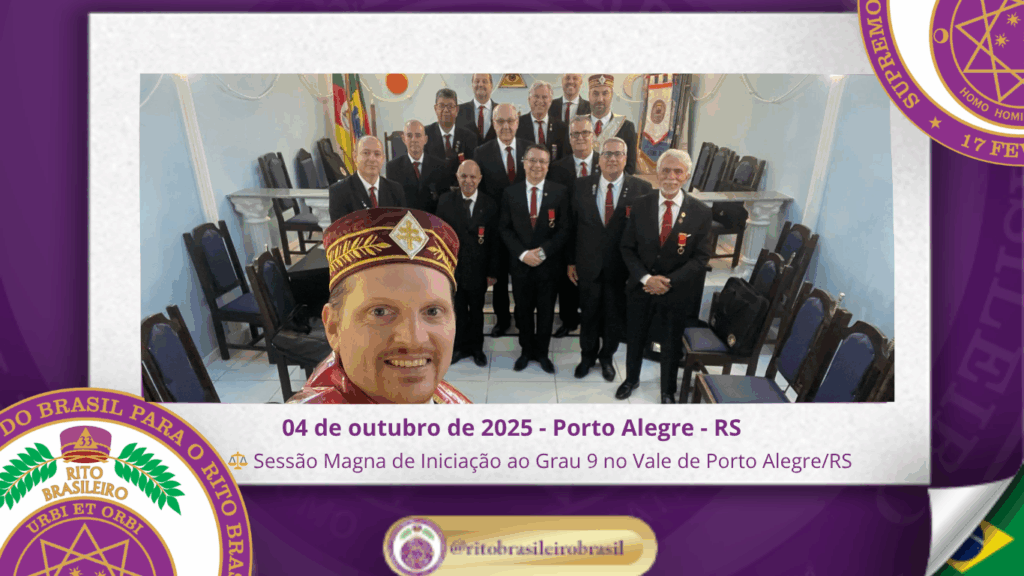 No dia quatro de outubro de dois mil e vinte e cinco, o Supremo Conclave do Brasil para o Rito Brasileiro de Maçons Antigos, Livres e Aceitos, através do Ilustre e Sublime Capítulo Visconde de Mauá nº 77, ao Vale de Porto Alegre – RS, realizou uma Sessão Magna de Iniciação ao Grau 9 – Mestre da Justiça, marco importante na hierarquia dos Altos Graus do Rito Brasileiro.