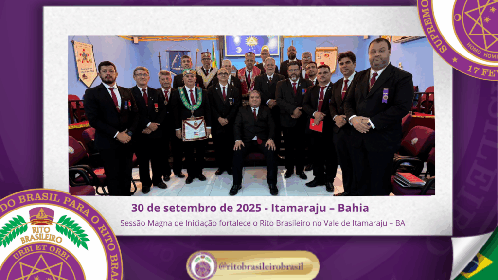 No dia 30 de setembro de 2025, ao Vale de Itamaraju – Bahia, o Supremo Conclave do Brasil para o Rito Brasileiro de Maçons Antigos, Livres e Aceitos registrou com júbilo e fraterna alegria a realização da Sessão Magna de Iniciação ao Grau 4 – Mestre da Discrição do Ilustre Irmão Rodrigo Campos Elbacha, portador do IRB nº 13.647.