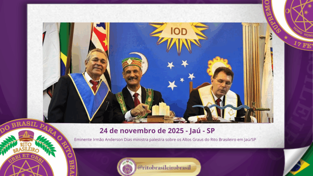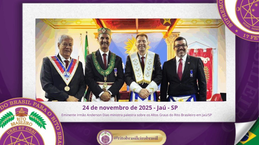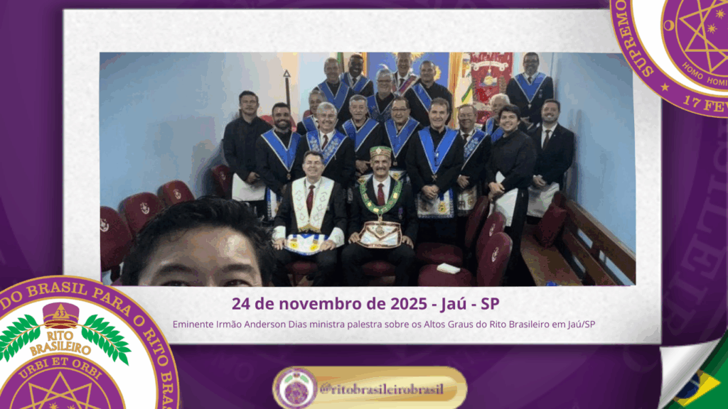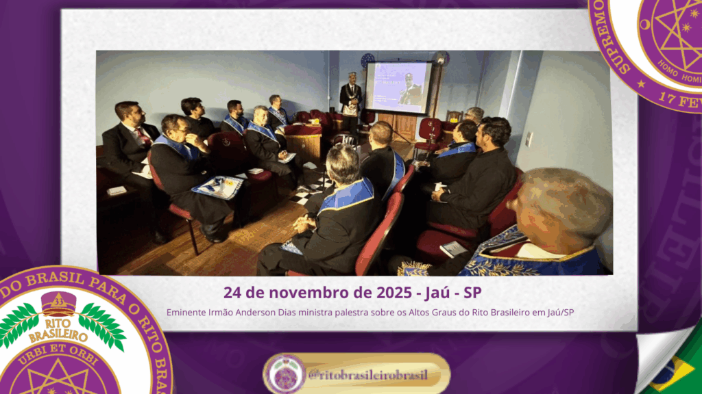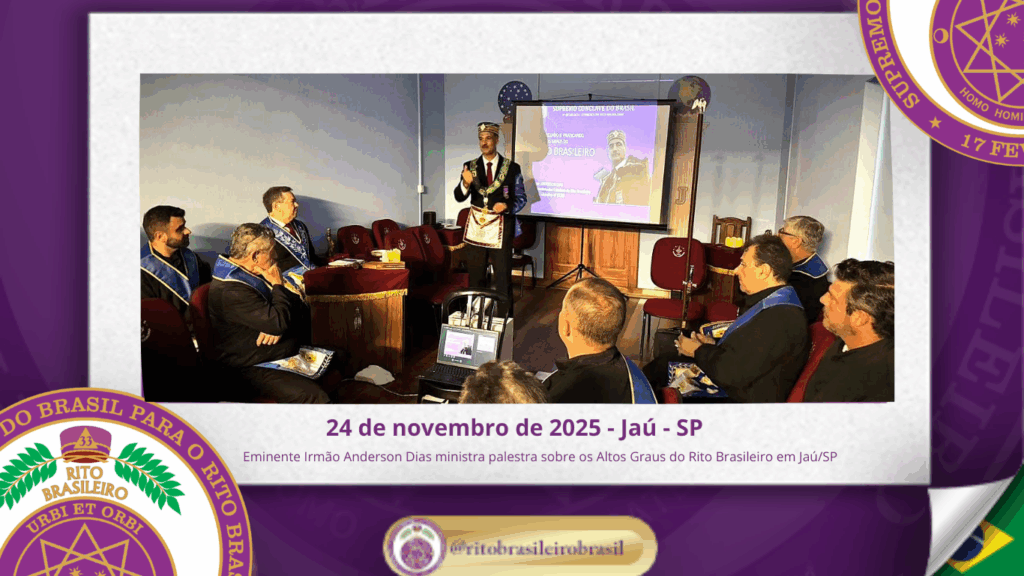 O Supremo Conclave do Brasil teve a honra de prestigiar mais uma importante ação de fortalecimento do Rito Brasileiro no Estado de São Paulo. No dia vinte e quatro de novembro de dois mil e vinte e cinco, o Eminente Irmão Anderson da Silva Dias, Coordenador das Delegacias da Macro Região de São Paulo e Delegado Litúrgico da 9ª Delegacia Litúrgica do Rito Brasileiro, ministrou uma palestra com o tema: