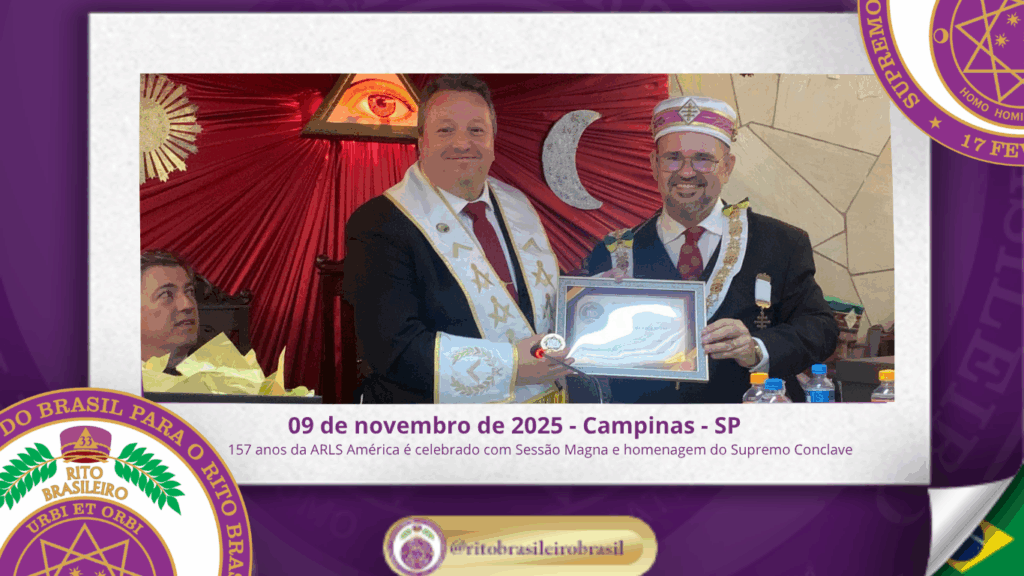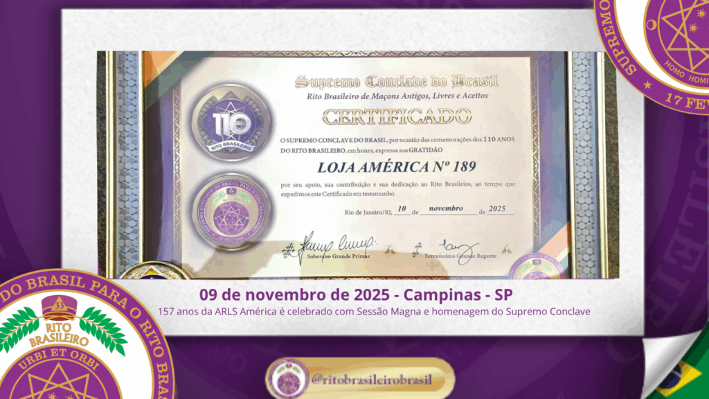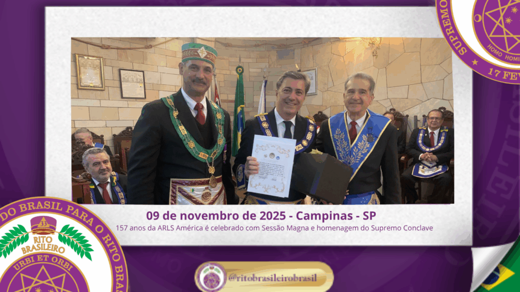 No dia nove de novembro de dois mil e vinte e cinco, a Augusta e Respeitável Loja Simbólica América Cruz de Excelência Maçônica nº 189, da 9ª Macrorregião, promoveu uma significativa Sessão Magna Comemorativa pelos seus 157 anos de fundação, no Oriente de Campinas, sob a égide do Rito Brasileiro.