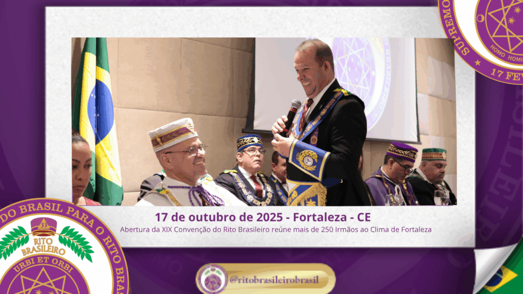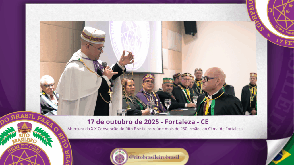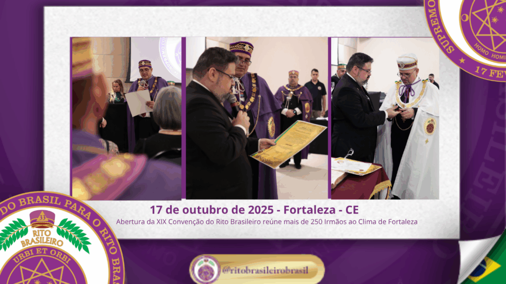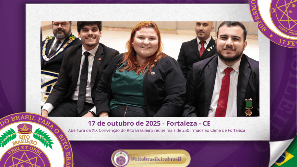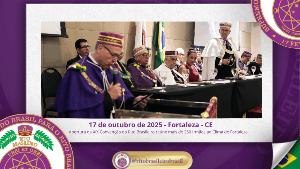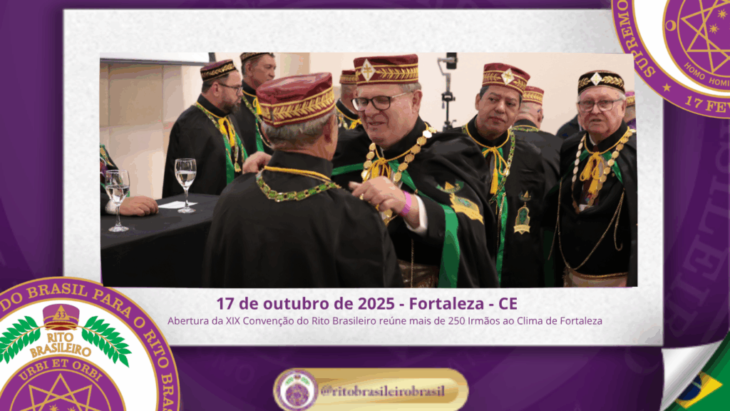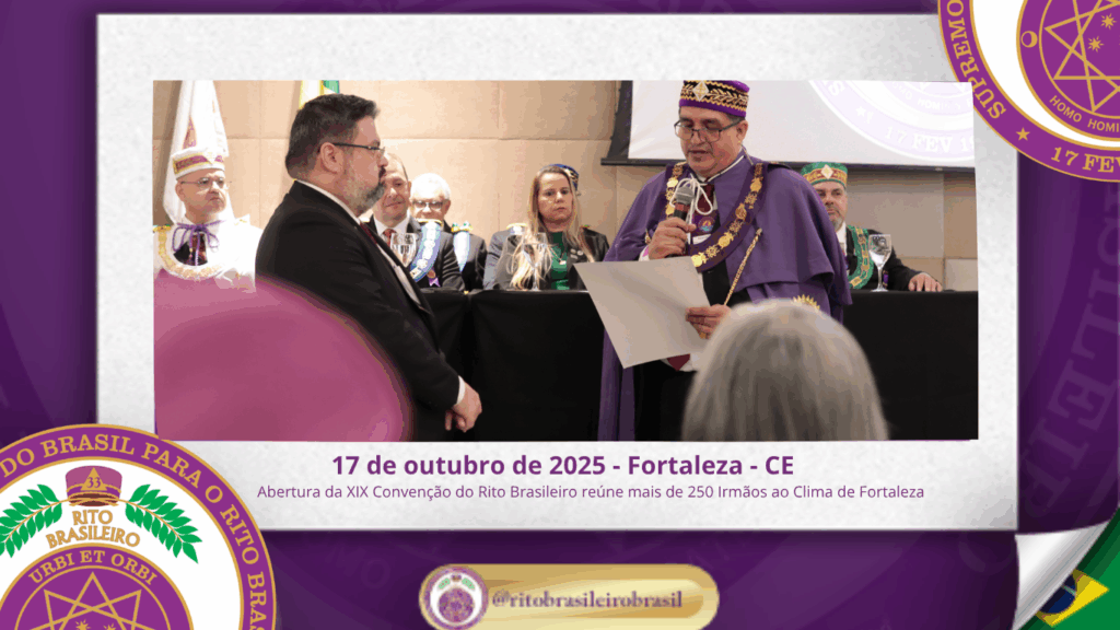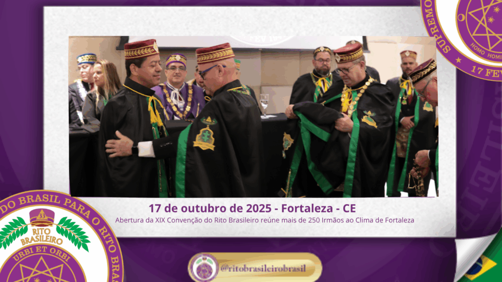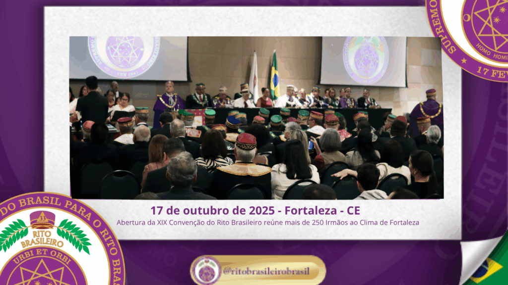 No dia dezessete de outubro do ano de dois mil e vinte e cinco, ao Clima de Fortaleza, teve lugar a Solenidade de Abertura da XIX Convenção Nacional do Rito Brasileiro de Maçons Antigos, Livres e Aceitos, reunindo mais de 250 pessoas entre Irmãos, Cunhadas, amigos e convidados no auditório do Afago Mareiro Hotel.
