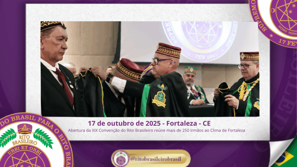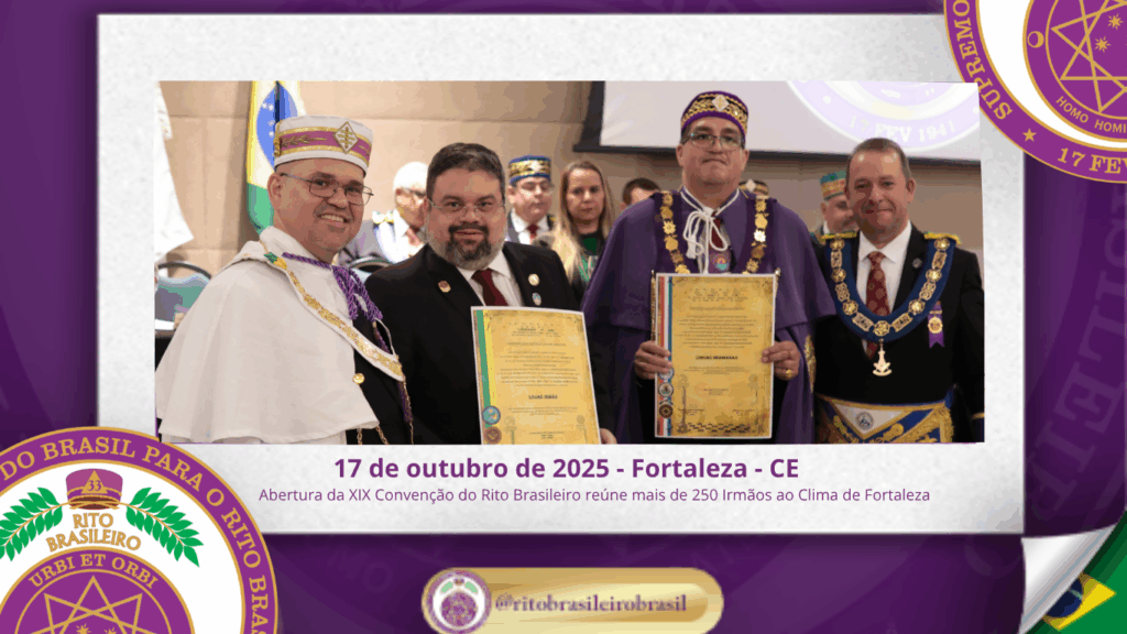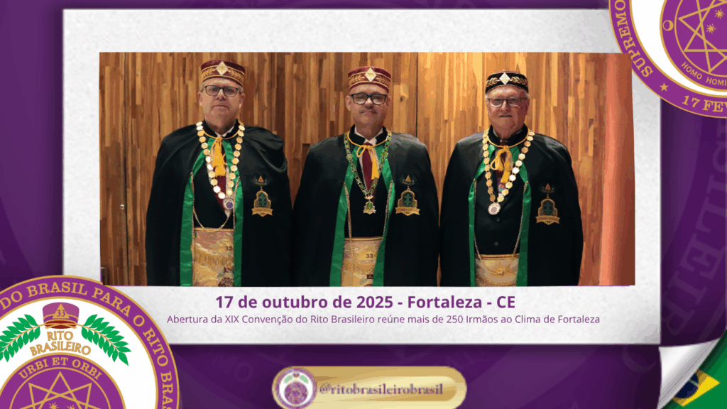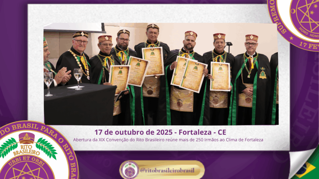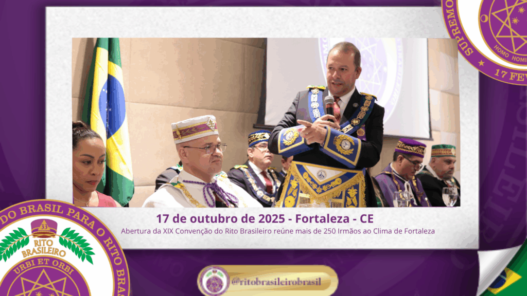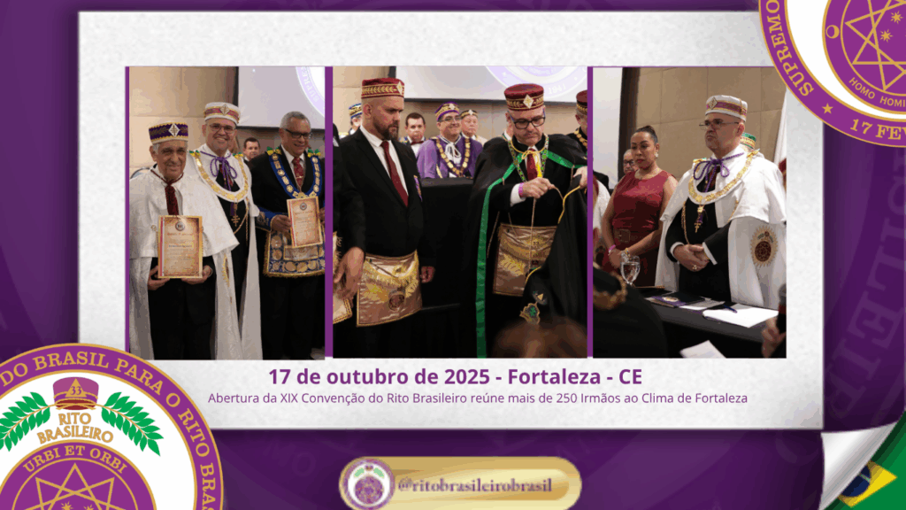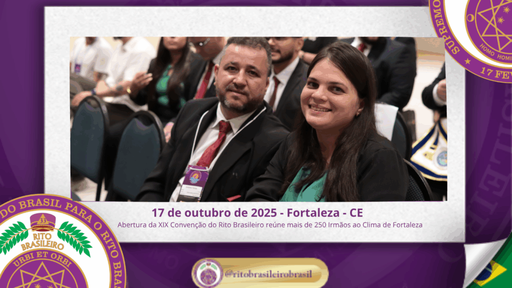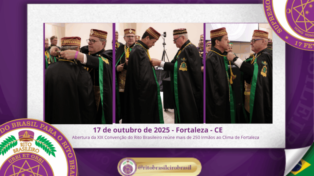 No dia dezessete de outubro do ano de dois mil e vinte e cinco, ao Clima de Fortaleza, teve lugar a Solenidade de Abertura da XIX Convenção Nacional do Rito Brasileiro de Maçons Antigos, Livres e Aceitos, reunindo mais de 250 pessoas entre Irmãos, Cunhadas, amigos e convidados no auditório do Afago Mareiro Hotel.