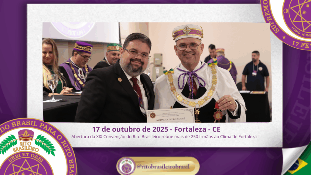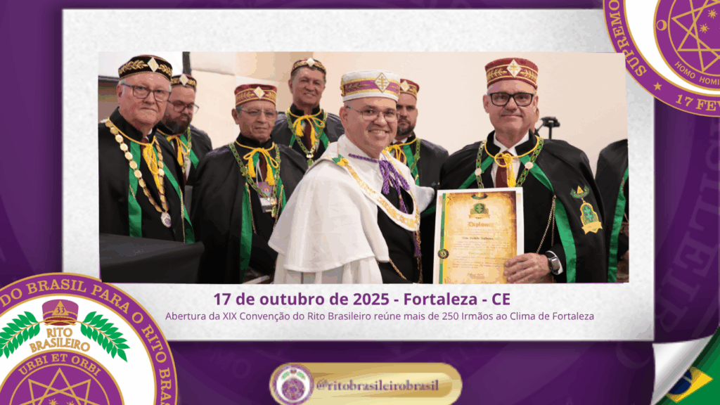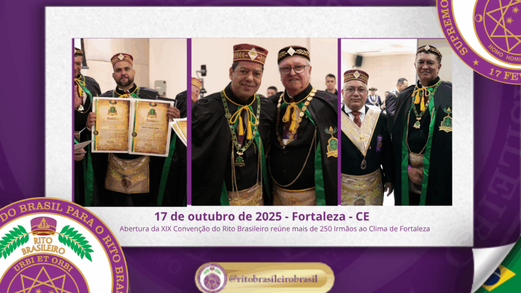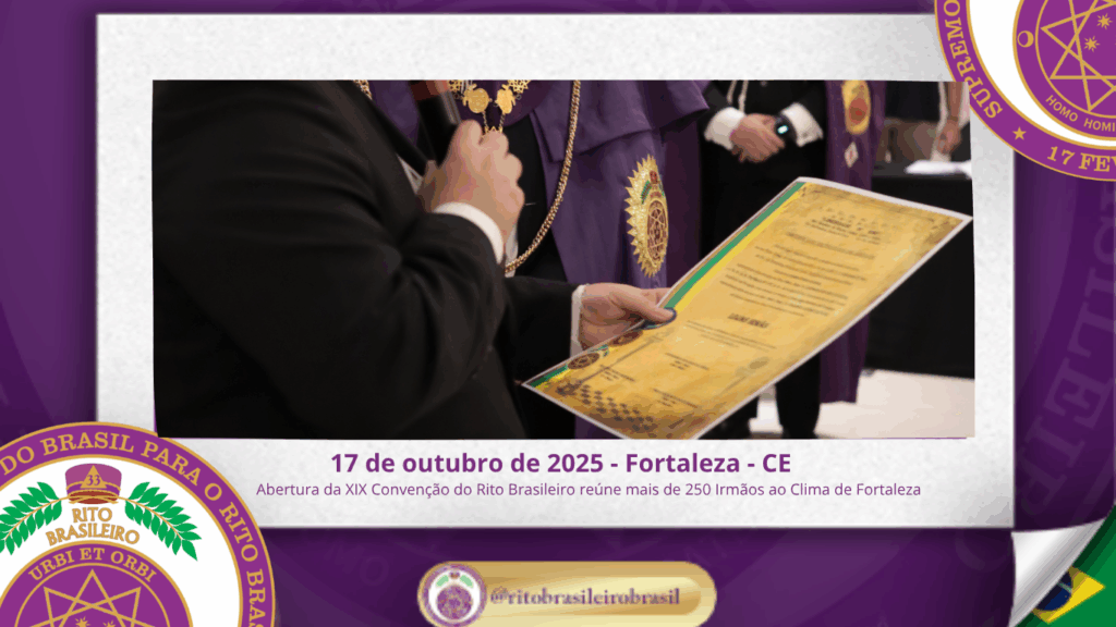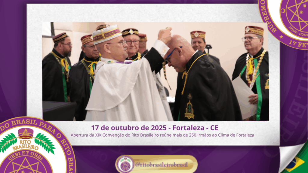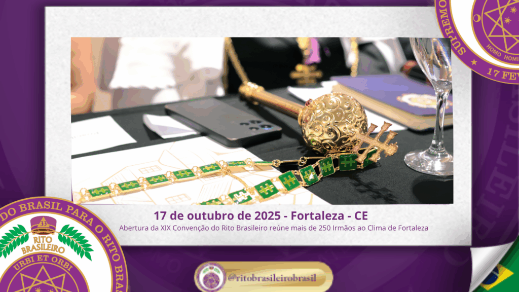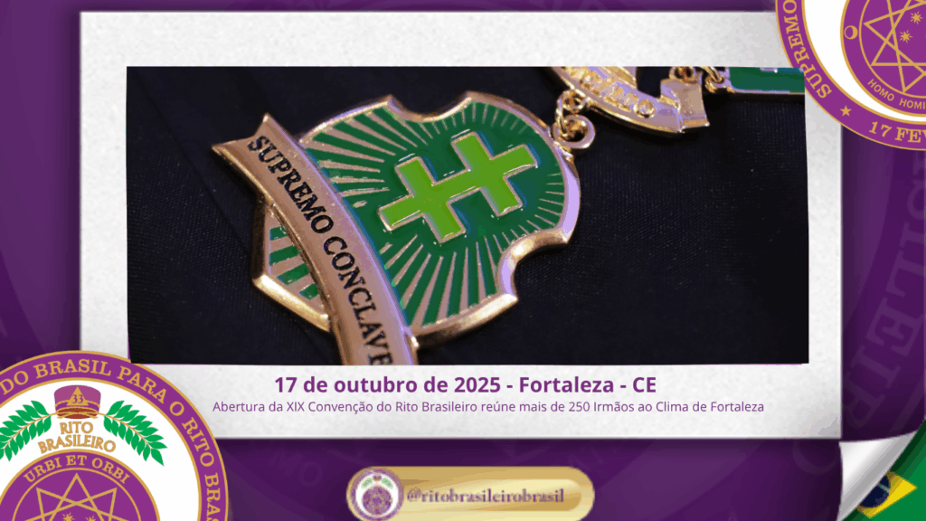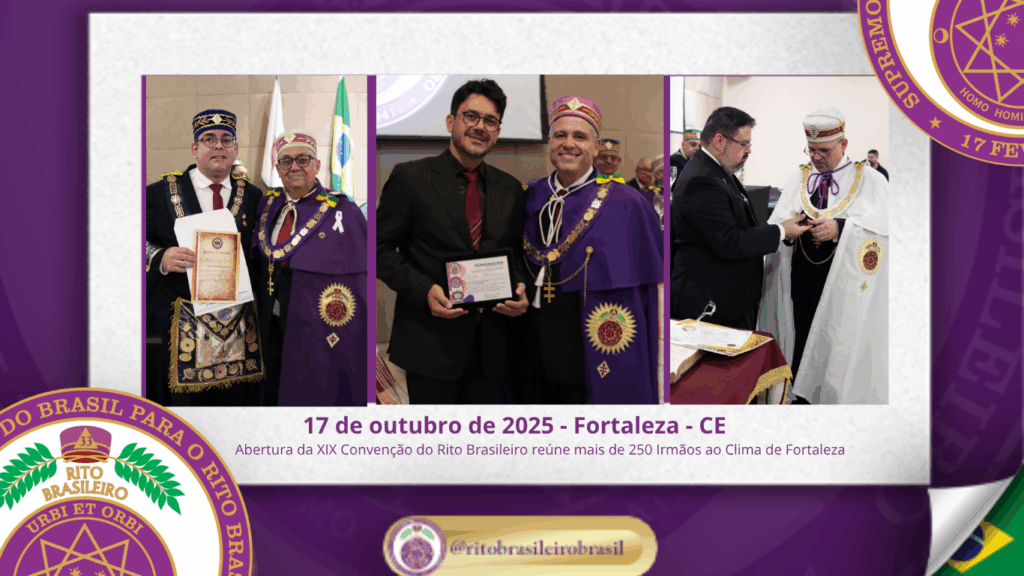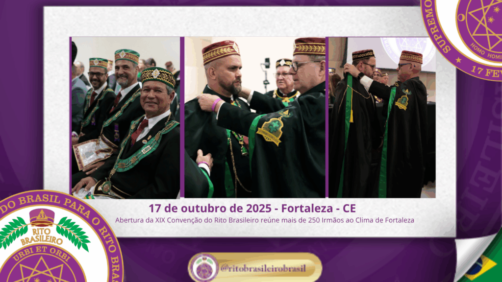 No dia dezessete de outubro do ano de dois mil e vinte e cinco, ao Clima de Fortaleza, teve lugar a Solenidade de Abertura da XIX Convenção Nacional do Rito Brasileiro de Maçons Antigos, Livres e Aceitos, reunindo mais de 250 pessoas entre Irmãos, Cunhadas, amigos e convidados no auditório do Afago Mareiro Hotel.