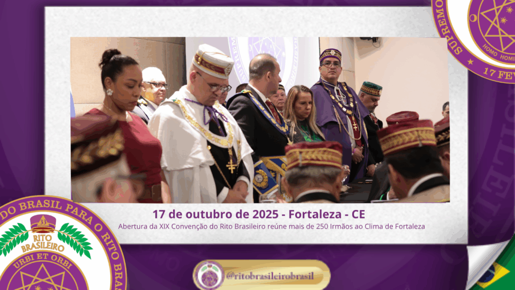 No dia dezessete de outubro do ano de dois mil e vinte e cinco, ao Clima de Fortaleza, teve lugar a Solenidade de Abertura da XIX Convenção Nacional do Rito Brasileiro de Maçons Antigos, Livres e Aceitos, reunindo mais de 250 pessoas entre Irmãos, Cunhadas, amigos e convidados no auditório do Afago Mareiro Hotel.