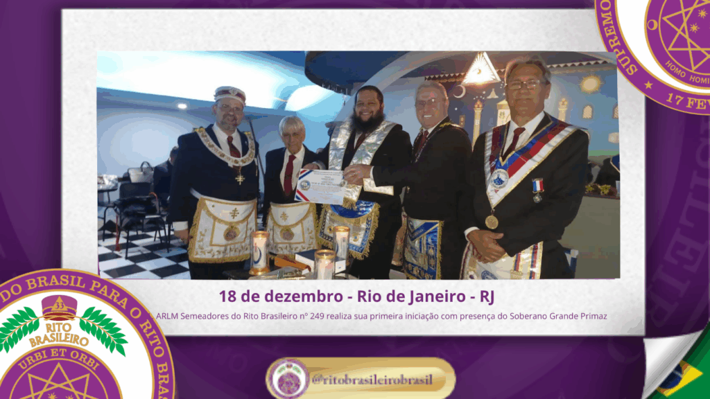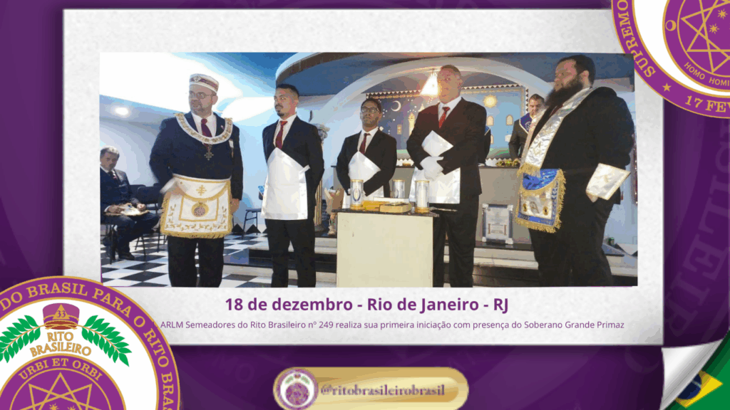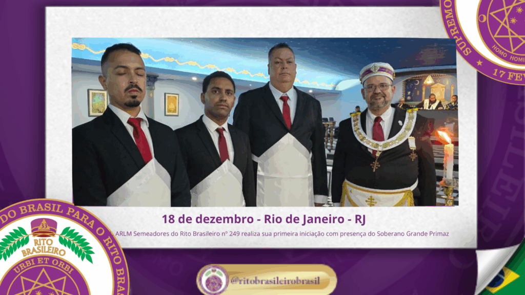 No dia dezoito de dezembro de dois mil e vinte e cinco, foi realizada a histórica Sessão Magna de Iniciação dos três primeiros filhos da Augusta e Respeitável Loja Simbólica Semeadores do Rito Brasileiro nº 249, jurisdicionada à Grande Loja Maçônica do Estado do Rio de Janeiro (GLMERJ).