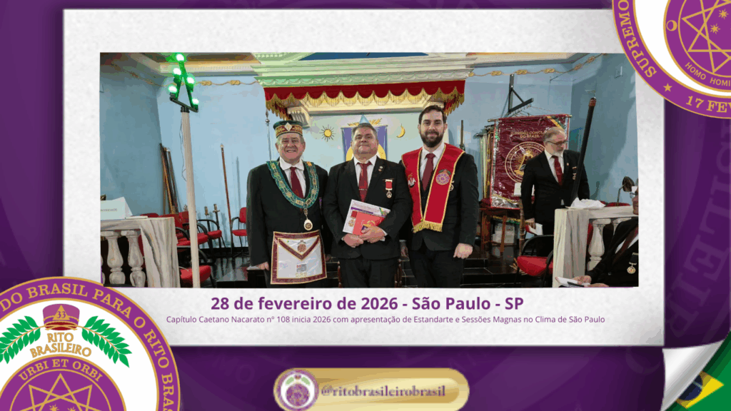 O Ilustre e Sublime Capítulo Caetano Nacarato nº 108, ao Clima de São Paulo, iniciou os trabalhos de 2026 com a apresentação de seu Estandarte e a realização de Sessões Magnas de Iniciação e Comunicação de Graus, fortalecendo os Altos Graus do Rito Brasileiro.