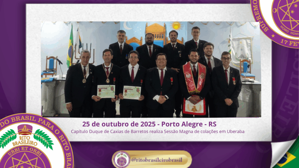 No dia vinte e cinco de outubro do ano de dois mil e vinte e cinco, o Ilustre e Sublime Capítulo Duque de Caxias nº 139, do Clima de Barretos/SP, reuniu-se ao Vale de Uberaba, no Estado de Minas Gerais, para a realização de significativas Sessões Magnas de Colação dos Graus 14 e 15 do Rito Brasileiro, reforçando os laços fraternos entre os Climas e promovendo o crescimento filosófico de seus obreiros.