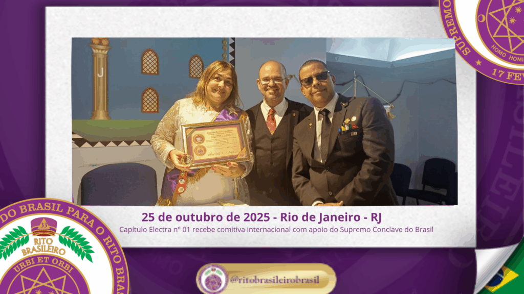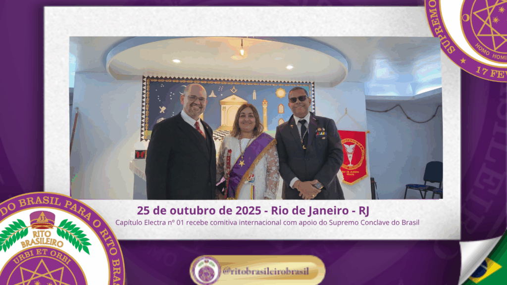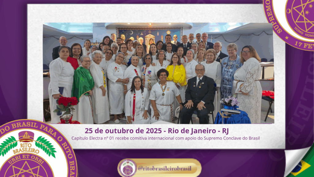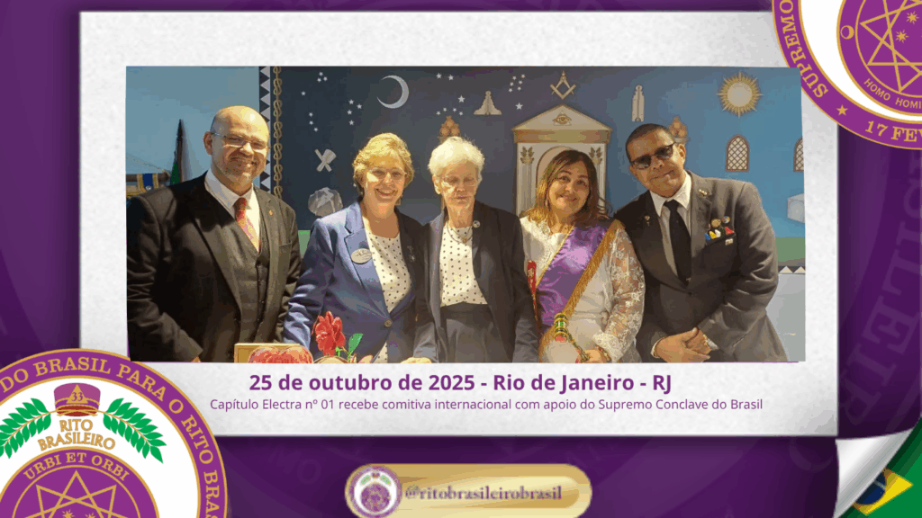 No dia vinte e cinco de outubro do ano de dois mil e vinte e cinco, ao Oriente do Rio de Janeiro, o Soberano Grande Primaz Juliano Coelho Braga participou de uma Sessão Especial de Estudos no Capítulo Electra nº 01 da Ordem Estrela do Oriente, ocasião marcada por Fraternidade, reconhecimento institucional e aproximação internacional com a mais antiga Ordem Paramaçônica do mundo.