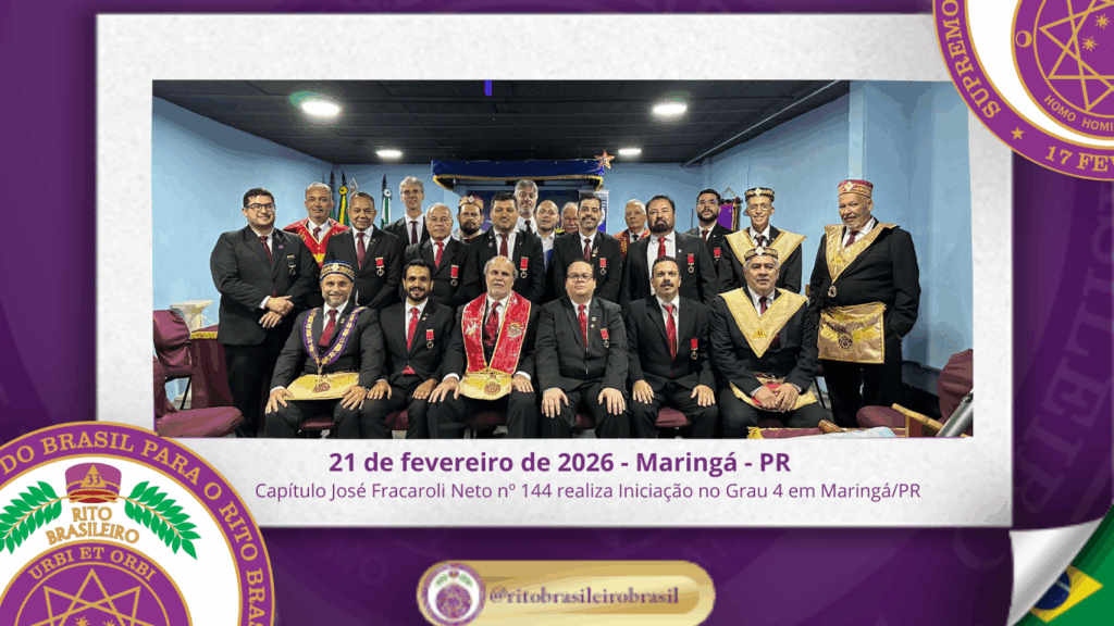 No dia 21 de fevereiro de 2026, o Ilustre e Sublime Capítulo José Fracaroli Neto nº 144, ao Vale de Maringá, realizou Sessão Magna de Iniciação ao Grau 4 – Mestre da Discrição, reunindo 22 Irmãos em ambiente de elevada harmonia e rigor ritualístico.