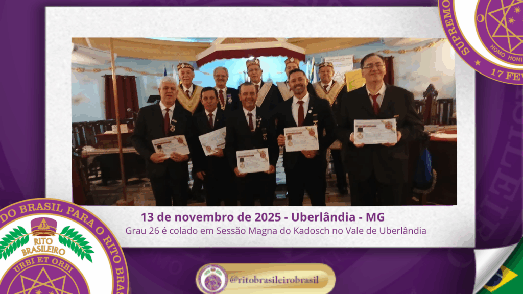 No dia treze de novembro de dois mil e vinte e cinco, foi realizada, no Poderoso Grande Conselho Kadosch Filosófico do Triângulo nº 139, ao Vale de Uberlândia/MG, a *Sessão Magna de Colação do Grau 26 – Missionário da Paz. 🌟 Sessão Magna do Grau 26 – Missionário da Paz no Vale de Uberlândia A […]