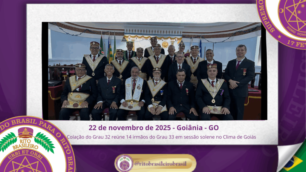 No dia vinte e dois de novembro de dois mil e vinte e cinco, ao Clima de Goiânia, no Colendo Alto Colégio Anhanguera n.º 203, foi realizada a colação do Grau 32 – Guardião do Civismo dos Preclaros Irmãos Julierme, Sanyo, Daniel e Warner, em uma sessão marcada pela solenidade, pelo simbolismo e pela elevada […]