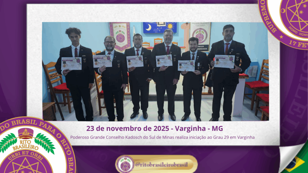 No dia vinte e três de novembro de dois mil e vinte e cinco, ao Vale de Varginha, no Estado de Minas Gerais, o Poderoso Grande Conselho de Kadosch Filosófico do Sul de Minas nº 156 realizou uma marcante Sessão Magna de Iniciação ao Grau 29 – Missionário da Religião, reafirmando seu compromisso com a […]