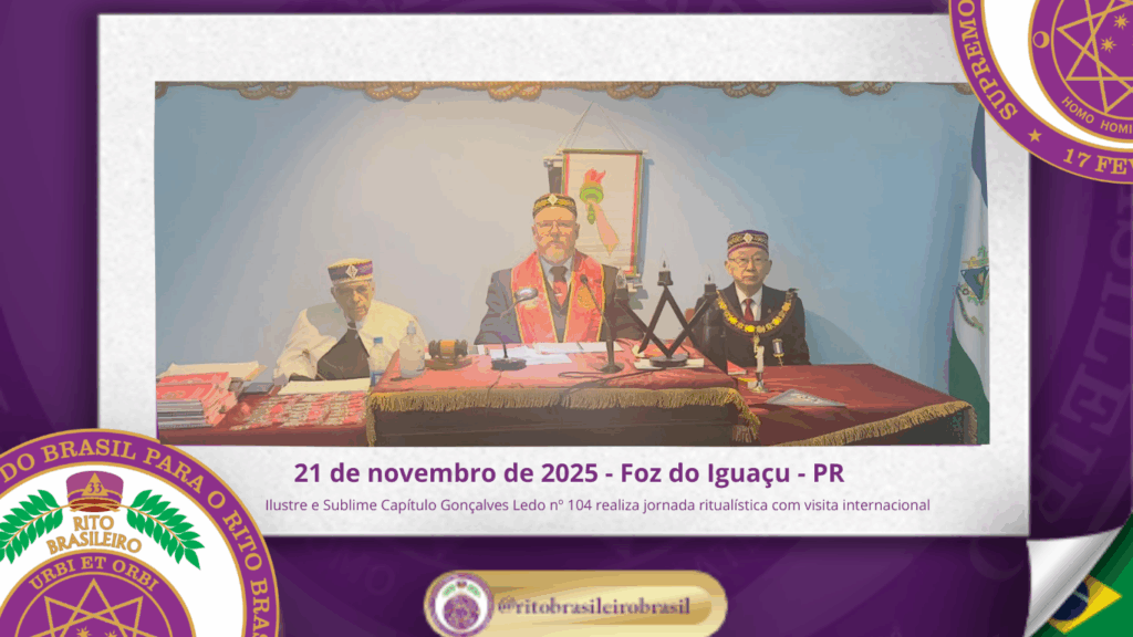 No dia vinte e um de novembro de dois mil e vinte e cinco, o Ilustre e Sublime Capítulo Gonçalves Ledo nº 104, ao Vale de Foz do Iguaçu, no Clima do Paraná, realizou uma memorável jornada ritualística com sessões nos Graus 14 – Mestre da Perseverança, 15 – Mestre da Liberdade e culminando com […]