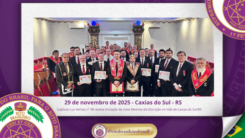 Em Sessão Magna de Iniciação realizada em 29 de novembro de 2025, o Ilustre e Sublime Capítulo Lux Veritas nº 98 recebeu nove novos Irmãos no Grau 4 – Mestre da Discrição, fortalecendo os trabalhos do Rito Brasileiro no Rio Grande do Sul com presença de autoridades e entusiasmo filosófico. 🕯️ Ingresso aos Altos Graus […]