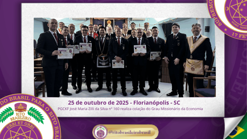 No dia vinte e cinco de outubro de dois mil e vinte e cinco, o Poderoso Grande Conselho Kadosch Filosófico José Maria Zilli da Silva nº 160, ao Clima de Florianópolis/SC, realizou uma Sessão Magna de Colação do Grau 22 – Missionário da Economia, marcando o ingresso de oito novos Obreiros aos Altos Graus do […]