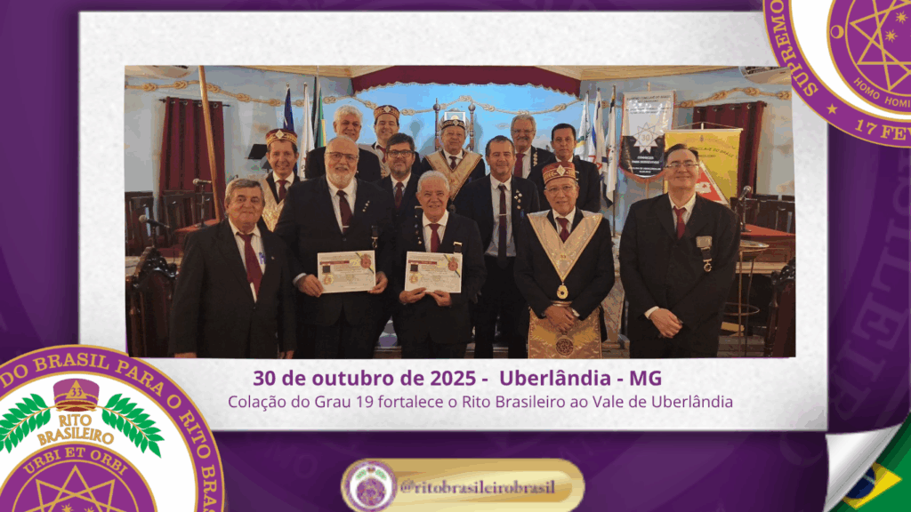 No dia trinta de outubro de dois mil e vinte e cinco, foi realizada, ao Vale de Uberlândia, no Poderoso Grande Conselho Kadosch Filosófico do Triângulo nº 139, a Sessão Magna de Colação do Grau 19 – Missionário da Agricultura e da Pecuária.