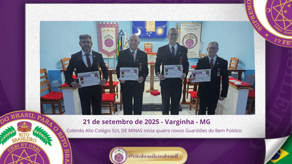 Nesta ocasião solene e memorável, quatro Preclaros Irmãos foram iniciados no Grau 31 – Guardião do Bem Público, dando mais um passo importante em sua caminhada pelos Altos Graus do Rito Brasileiro: