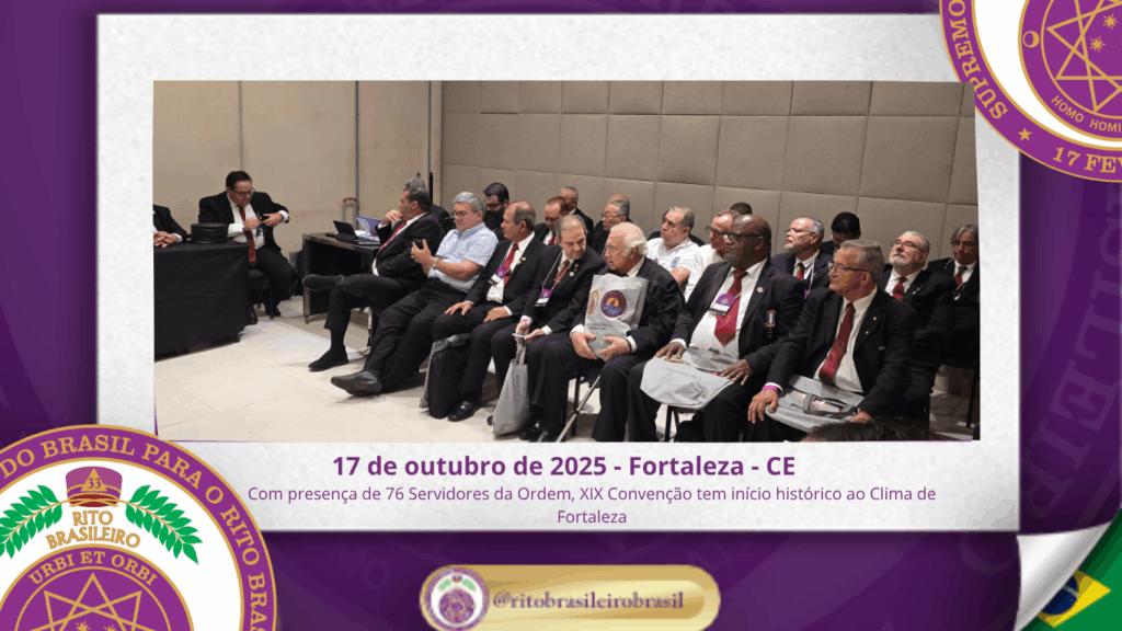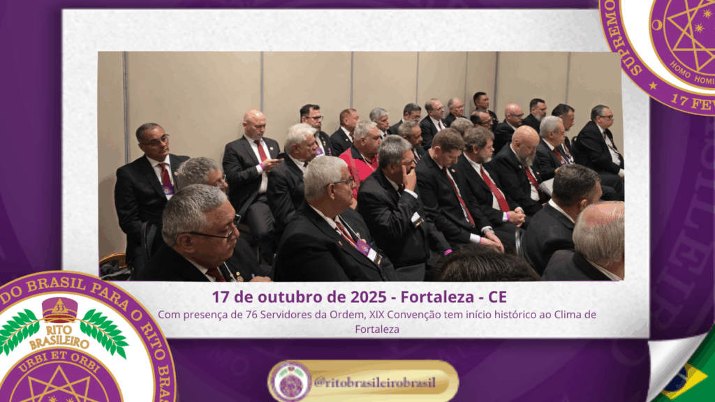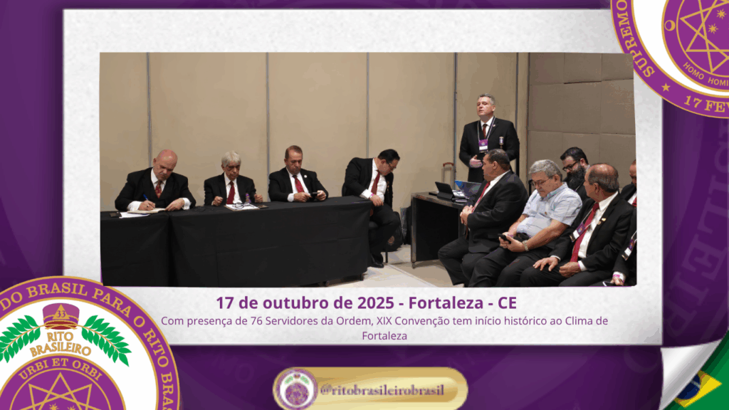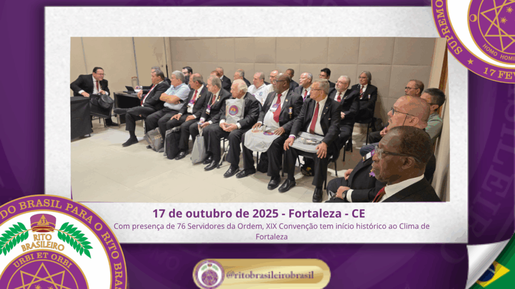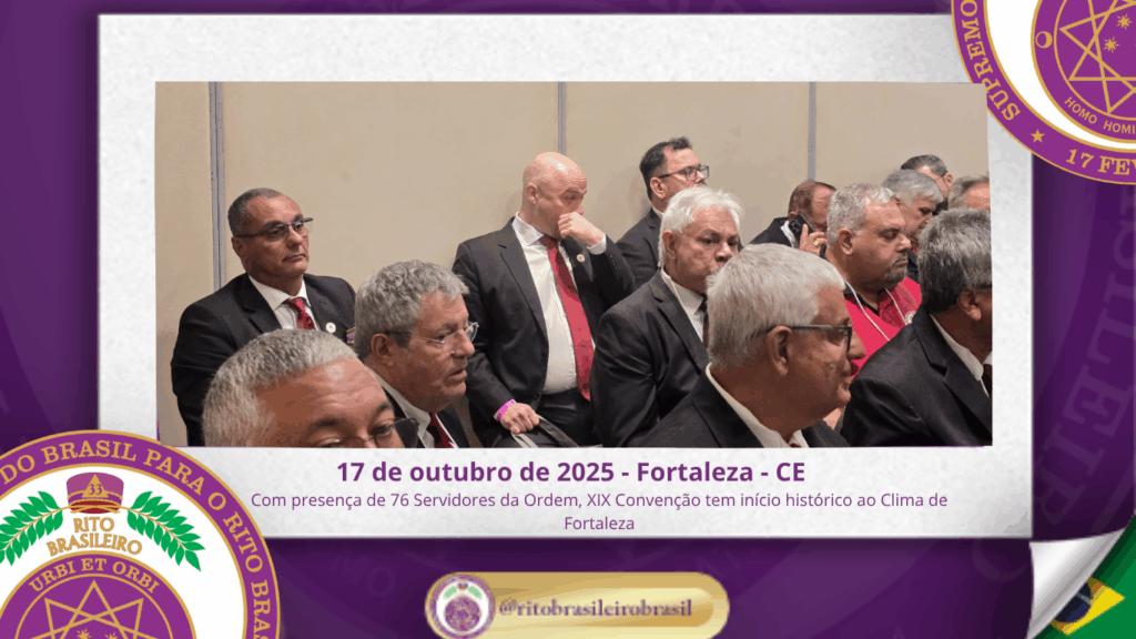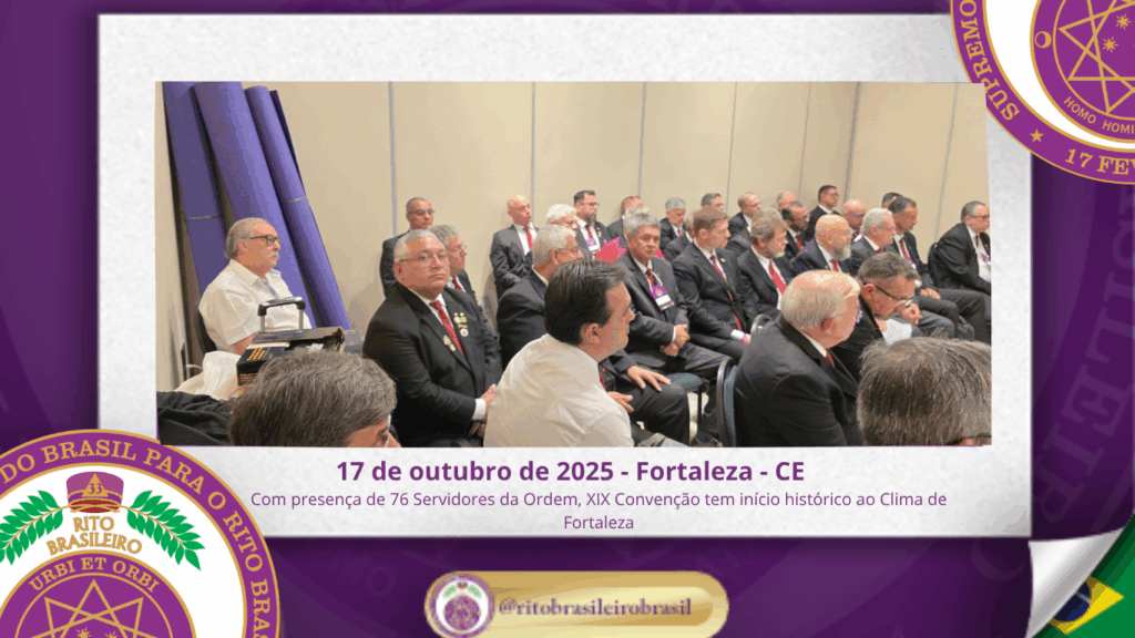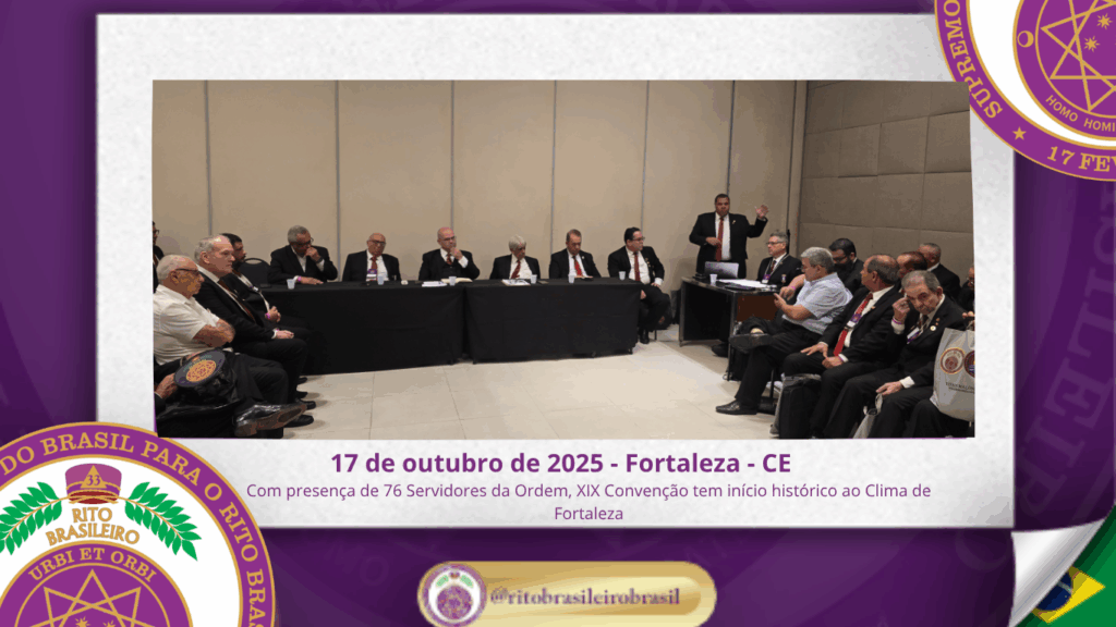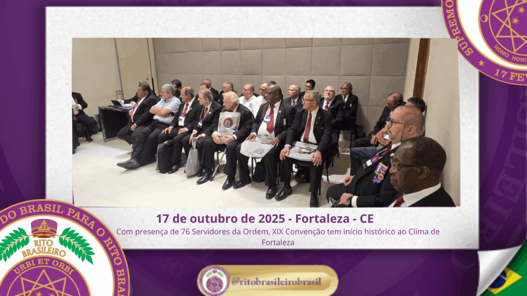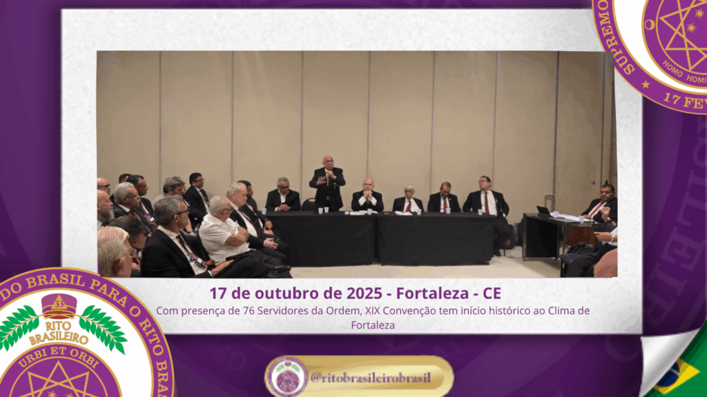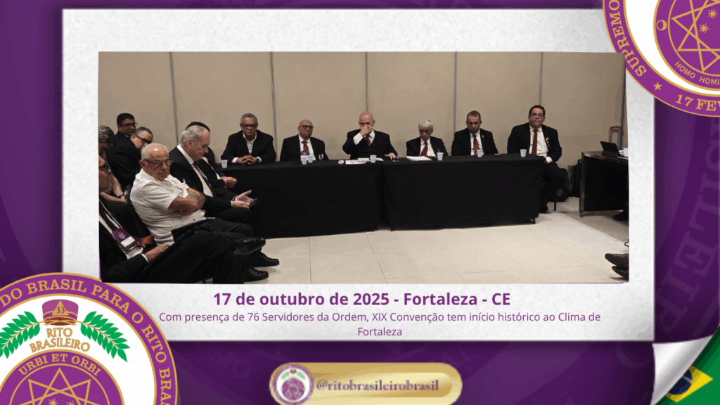 No dia dezessete de outubro do ano de dois mil e vinte e cinco, teve início, ao Clima de Fortaleza, a XIX Convenção Nacional do Rito Brasileiro de Maçons Antigos, Livres e Aceitos, um marco histórico que fortalece os alicerces do nosso Rito e projeta novos horizontes para o Supremo Conclave do Brasil.
