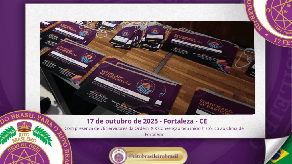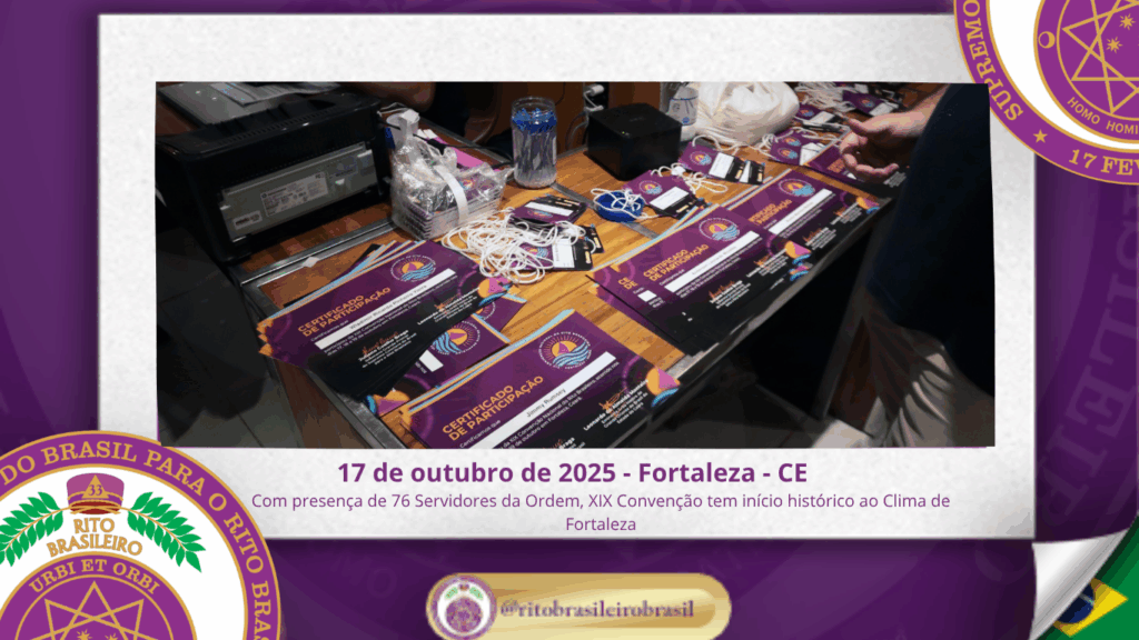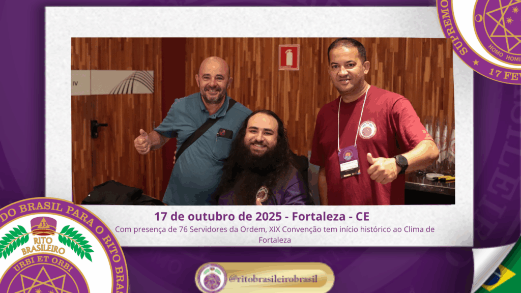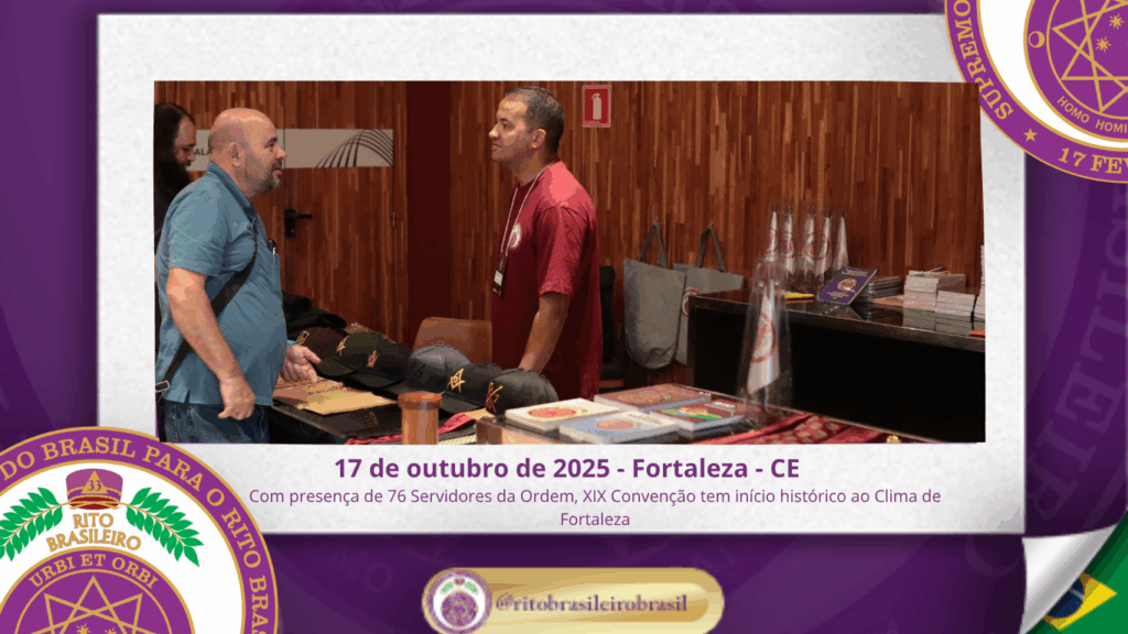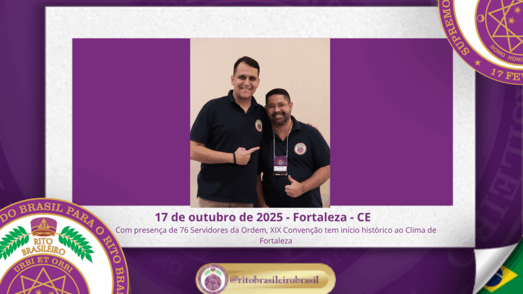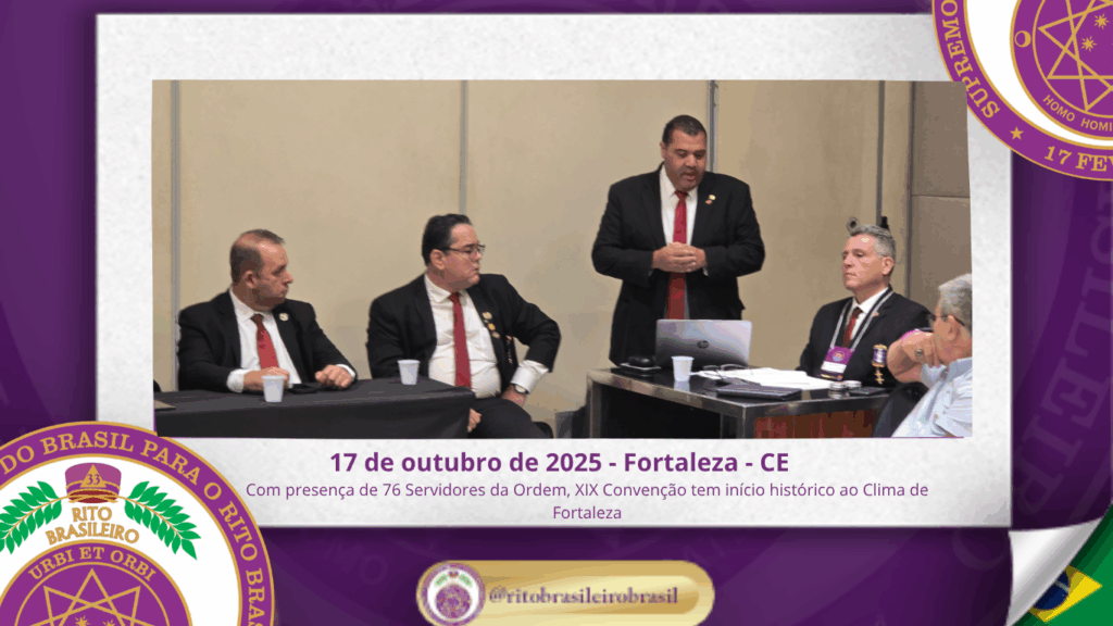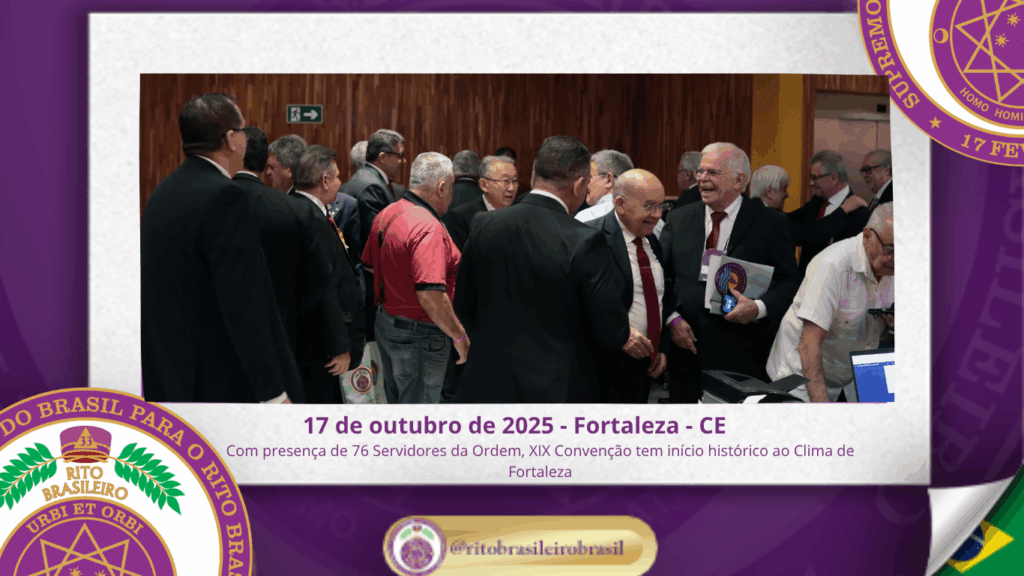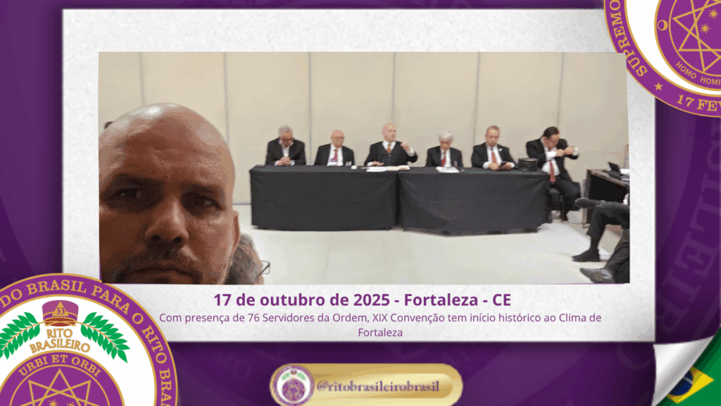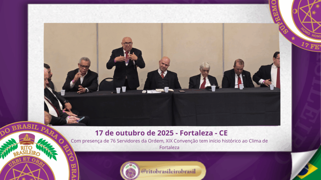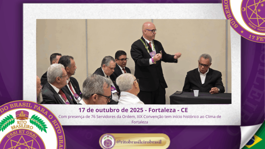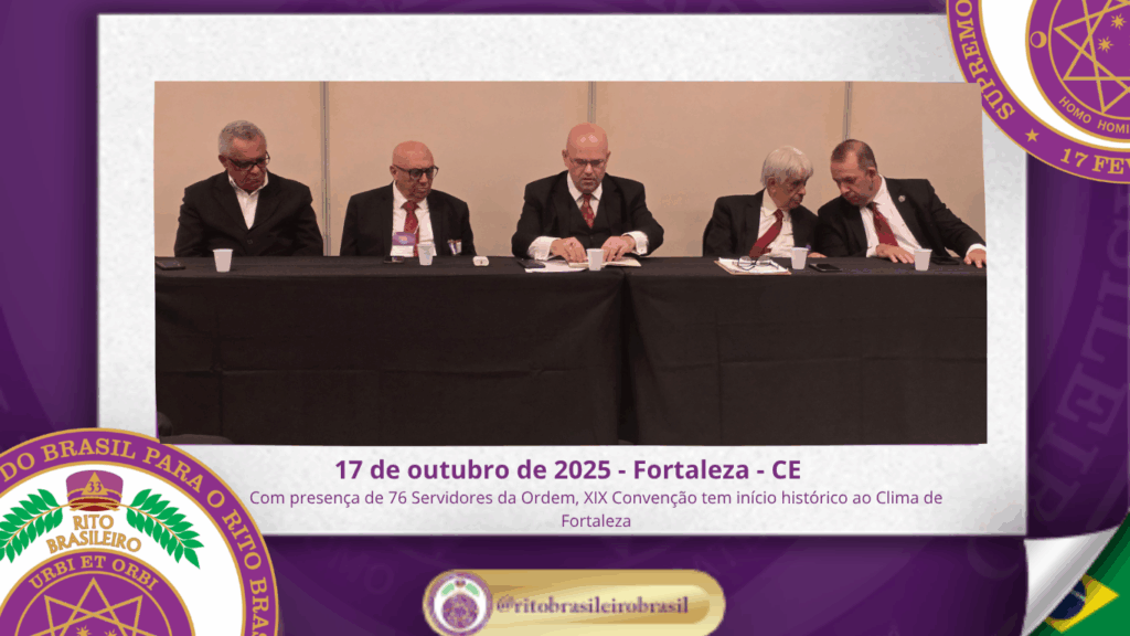 No dia dezessete de outubro do ano de dois mil e vinte e cinco, teve início, ao Clima de Fortaleza, a XIX Convenção Nacional do Rito Brasileiro de Maçons Antigos, Livres e Aceitos, um marco histórico que fortalece os alicerces do nosso Rito e projeta novos horizontes para o Supremo Conclave do Brasil.