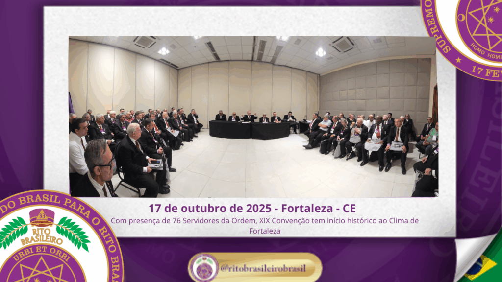 No dia dezessete de outubro do ano de dois mil e vinte e cinco, teve início, ao Clima de Fortaleza, a XIX Convenção Nacional do Rito Brasileiro de Maçons Antigos, Livres e Aceitos, um marco histórico que fortalece os alicerces do nosso Rito e projeta novos horizontes para o Supremo Conclave do Brasil.