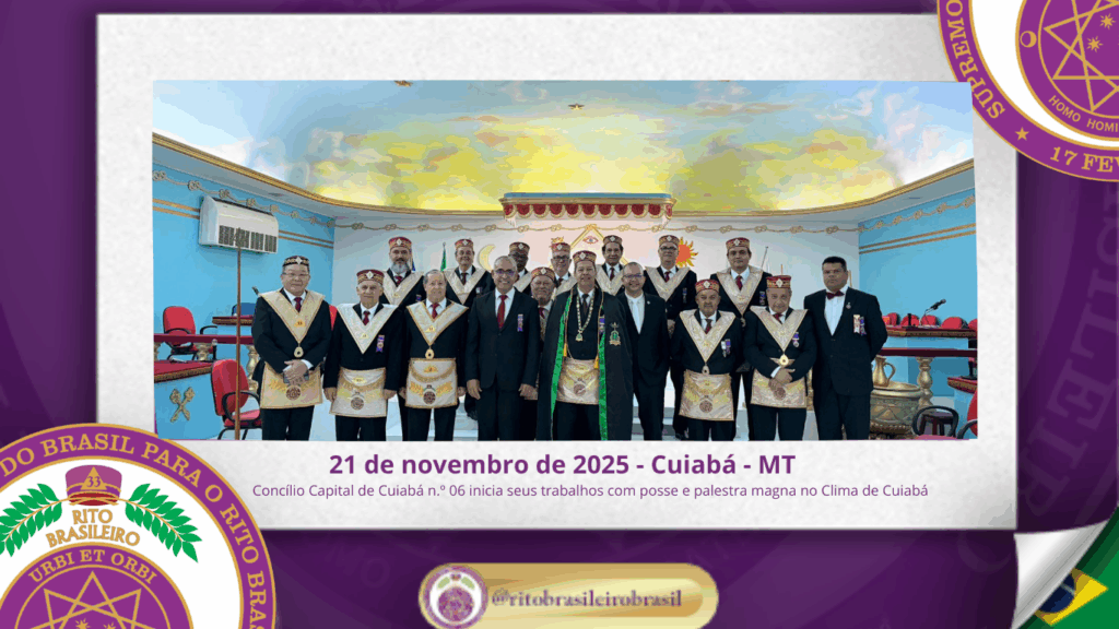 No dia vinte e dois de novembro de dois mil e vinte e cinco, ao Clima de Cuiabá-MT, a luz do Rito Brasileiro voltou a brilhar intensamente com a realização da Sessão de instalação dos trabalhos do Concílio Capital de Cuiabá n.º 06, sob a presidência do Eminente Irmão Sérgio Roberto César, em evento promovido pela Delegacia Litúrgica do Rito Brasileiro para o Estado de Mato Grosso, jurisdicionada ao Supremo Conclave do Brasil para o Rito Brasileiro de Maçons Antigos, Livres e Aceitos.