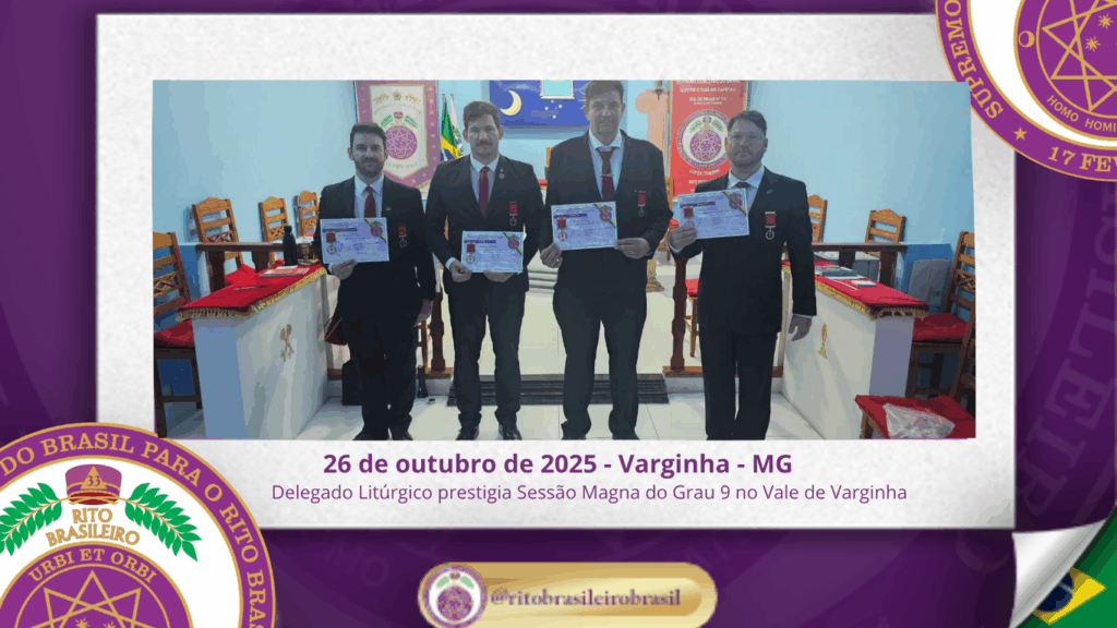 No dia vinte e seis de outubro de dois mil e vinte e cinco, ao Vale de Varginha, no Estado de Minas Gerais, o Ilustre e Sublime Capítulo SUL DE MINAS nº 119 realizou uma marcante Sessão Magna de Iniciação ao Grau 9 – Mestre da Justiça, no Templo da Augusta e Respeitável Loja Simbólica Fraternidade Varginhense nº 3556. O momento representou mais um avanço filosófico significativo dentro do Rito Brasileiro de Maçons Antigos, Livres e Aceitos.