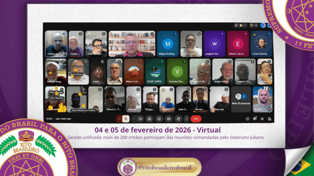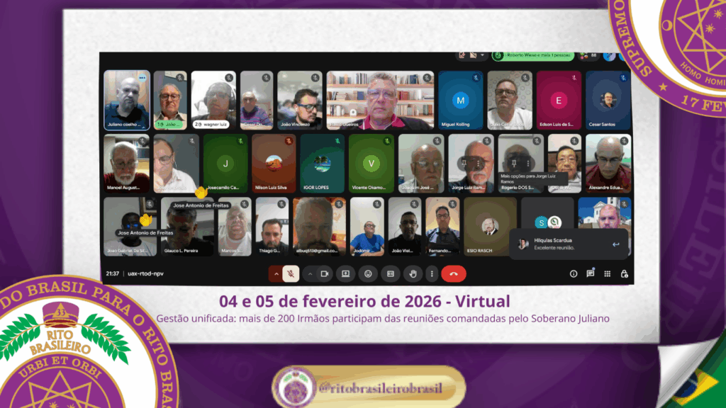 Nos dias 4 e 5 de fevereiro de 2026, o Supremo Conclave do Brasil para o Rito Brasileiro de Maçons Antigos, Livres e Aceitos realizou duas importantes reuniões administrativas em formato virtual, que reuniram, em cada encontro, mais de 100 Irmãos de todo o território nacional, reafirmando o compromisso com a organização, a transparência e o fortalecimento dos Altos Corpos Filosóficos.