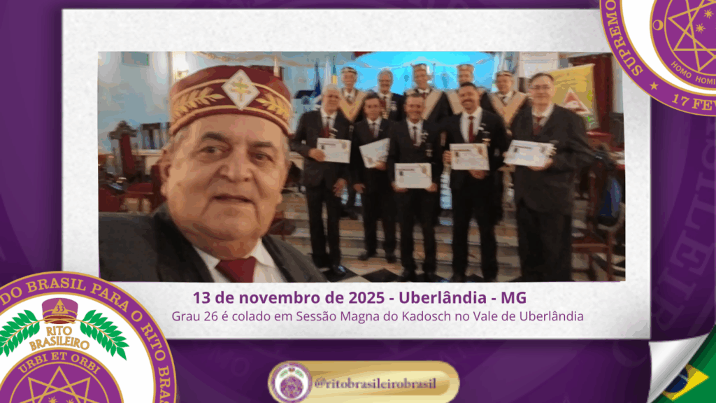 A Sessão transcorreu em clima de Harmonia e elevado simbolismo, reafirmando os princípios que norteiam os Altos Graus Filosóficos do Rito Brasileiro e a missão do Poderoso Grande Conselho Kadosch Filosófico em fortalecer os valores da Ordem no Vale de Uberlândia.