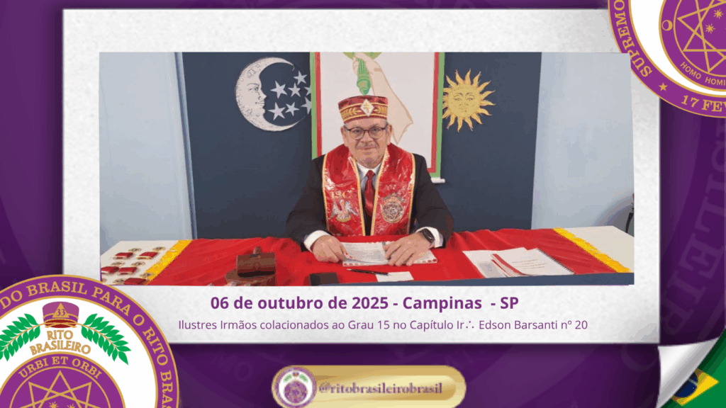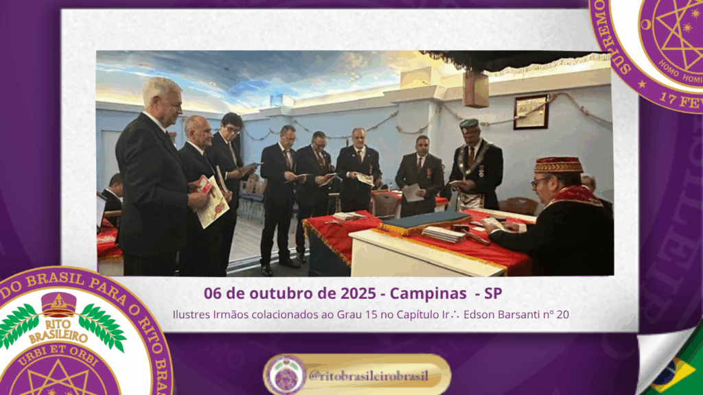 No dia seis de outubro do ano de dois mil e vinte e cinco, O Ilustre e Sublime Capítulo Ir∴ Edson Barsanti – nº 20, ao Vale de Campinas, realizou significativas Sessões Magnas de Colação e Transmissão de Graus que marcaram o fortalecimento e a expansão do Rito Brasileiro de Maçons Antigos, Livres e Aceitos no Estado de São Paulo.