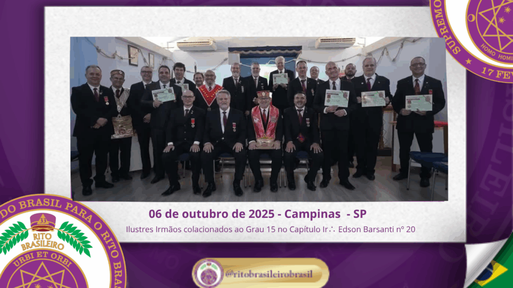 No dia seis de outubro do ano de dois mil e vinte e cinco, O Ilustre e Sublime Capítulo Ir∴ Edson Barsanti – nº 20, ao Vale de Campinas, realizou significativas Sessões Magnas de Colação e Transmissão de Graus que marcaram o fortalecimento e a expansão do Rito Brasileiro de Maçons Antigos, Livres e Aceitos no Estado de São Paulo.