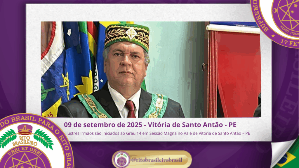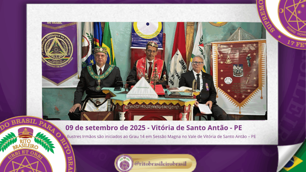 No dia 09 de setembro de 2025, ao Vale de Vitória de Santo Antão – PE, o Supremo Conclave do Brasil para o Rito Brasileiro de Maçons Antigos, Livres e Aceitos, por meio do Ilustre e Sublime Capítulo Luís Soares de Lima, nº 99, jurisdicionado à 1ª Delegacia Litúrgica de Pernambuco, realizou uma Sessão Magna de Iniciação ao Grau 14 – Mestre da Perseverança, da hierarquia dos Altos Graus do Rito Brasileiro.