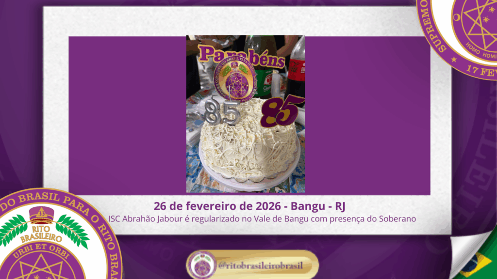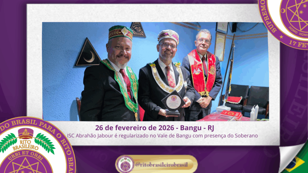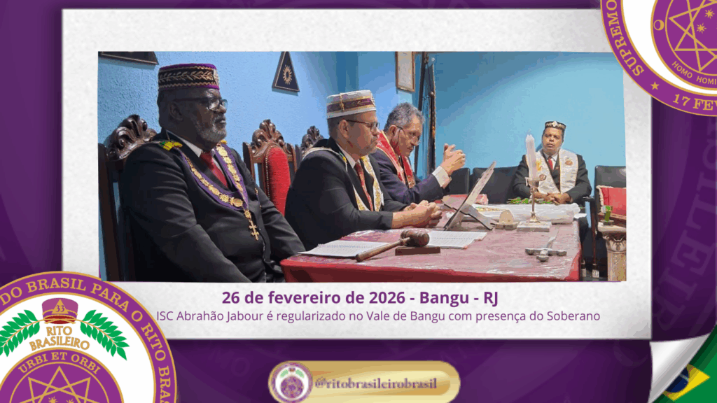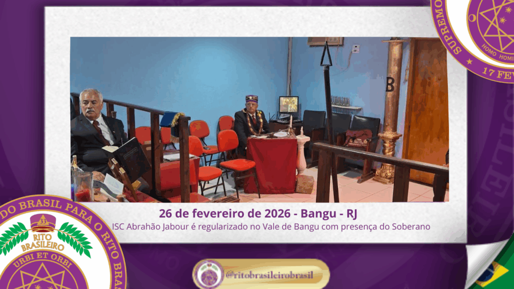 No dia 26 de fevereiro de 2026, ao Vale de Bangu/RJ, foi realizada a Sessão de Regularização do Ilustre e Sublime Capítulo Abrahão Jabour, marcando um momento histórico para os Altos Graus do Rito Brasileiro no Clima do Rio de Janeiro.