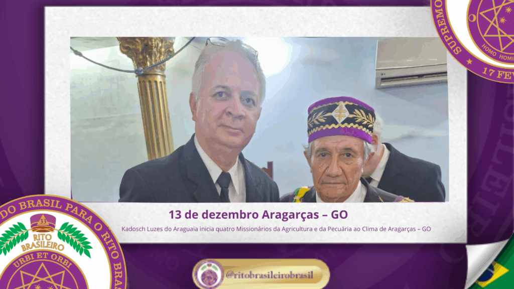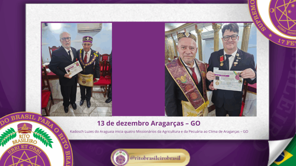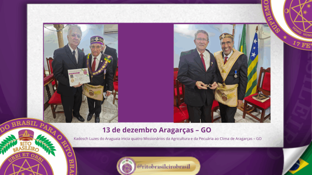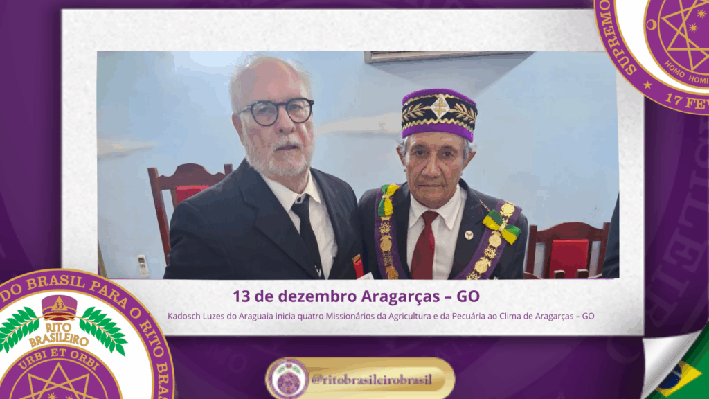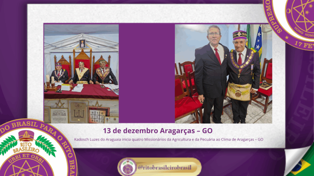 No dia treze de dezembro de dois mil e vinte e cinco, às dezesseis horas, o Poderoso Grande Conselho Kadosch Filosófico Luzes do Araguaia nº 123, ao Clima de Aragarças, no Estado de Goiás, realizou uma significativa Sessão Magna de Iniciação ao Grau 19 – Missionário da Agricultura e da Pecuária.