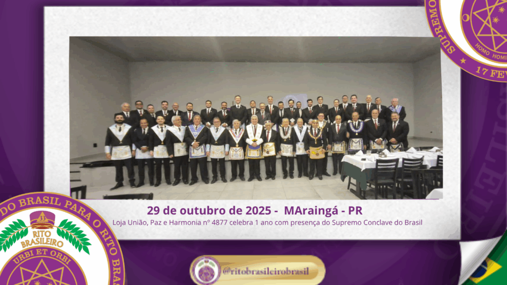 No dia vinte e nove de outubro de dois mil e vinte e cinco, no Oriente de Maringá-PR, o Supremo Conclave do Brasil para o Rito Brasileiro de Maçons Antigos, Livres e Aceitos marcou presença em uma belíssima Sessão Magna Comemorativa, em homenagem ao primeiro aniversário da Augusta e Respeitável Loja Simbólica União, Paz e Harmonia nº 4877, presidida pelo Venerável Mestre Irmão Abdel Naser Haj Ahmad, um dos grandes incentivadores e fundadores da Oficina.