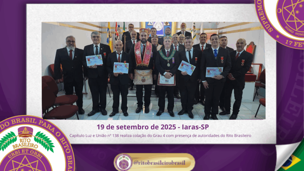 No dia dezenove de setembro de dois mil e vinte e cinco, o Ilustre e Sublime Capítulo Luz e União nº 138, ao Vale de Iaras-SP, realizou uma memorável Sessão Magna de Colação do Grau 4 – Mestre da Discrição, marcando o ingresso nos Altos Graus do Rito Brasileiro de Maçons Antigos, Livres e Aceitos […]