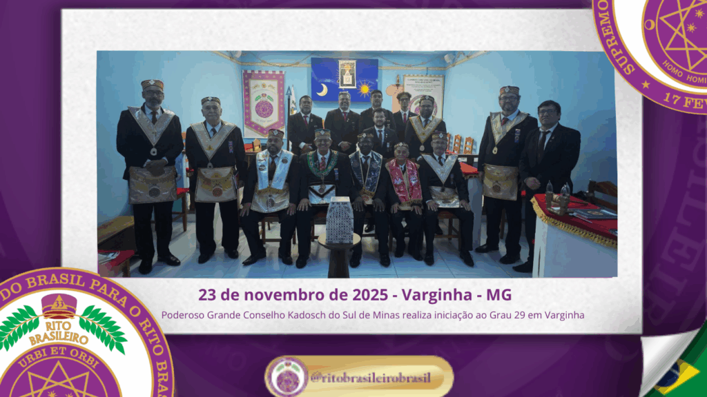 No dia vinte e três de novembro de dois mil e vinte e cinco, ao Vale de Varginha, no Estado de Minas Gerais, o Poderoso Grande Conselho de Kadosch Filosófico do Sul de Minas nº 156 realizou uma marcante Sessão Magna de Iniciação ao Grau 29 – Missionário da Religião, reafirmando seu compromisso com a elevação filosófica e a valorização ritualística do Rito Brasileiro de Maçons Antigos, Livres e Aceitos.