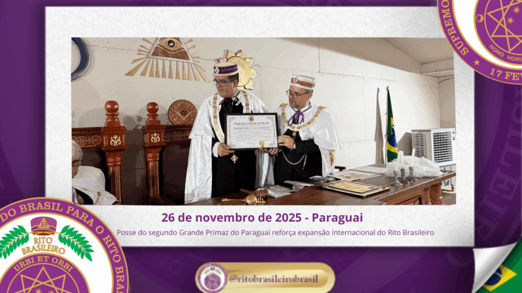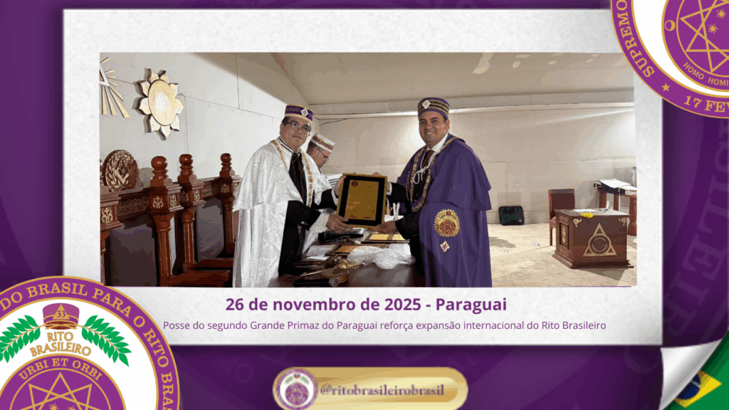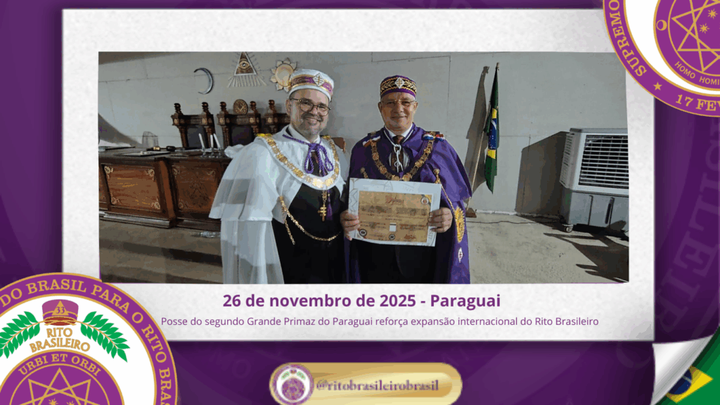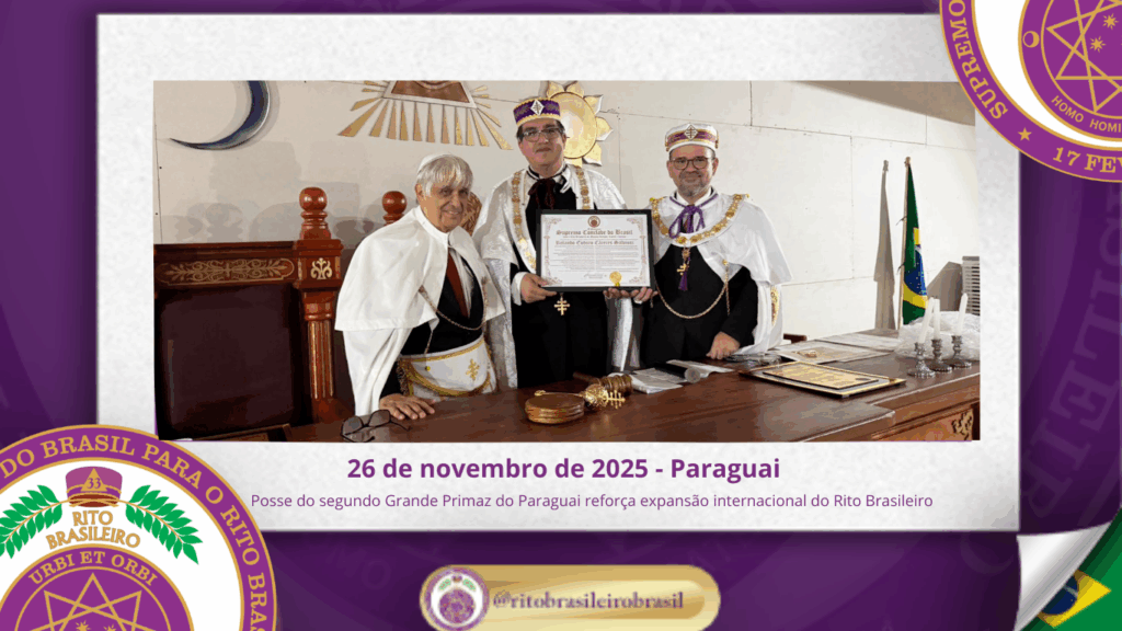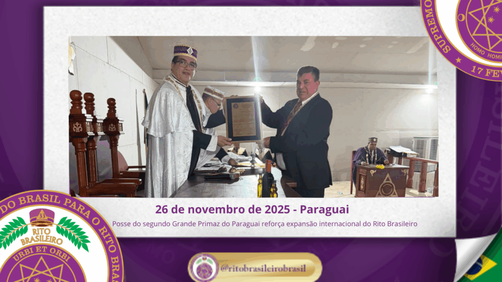 Em um momento de grande significado para os Altos Graus Filosóficos do Rito Brasileiro, foi realizada, no dia vinte e seis de novembro de dois mil e vinte e cinco, uma solene e histórica sessão no Clima do Paraguai, onde ocorreu a posse do segundo Grande Primaz do Supremo Conclave do Paraguai, o Irmão Rolando Cáceres Salvioni.