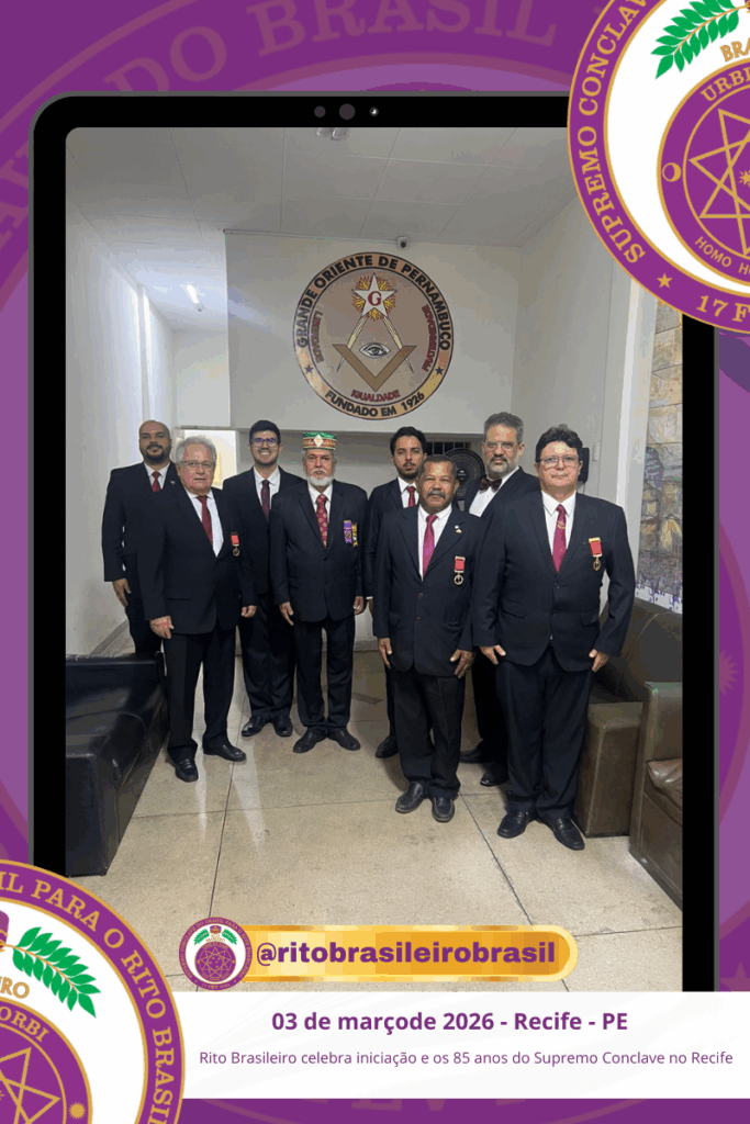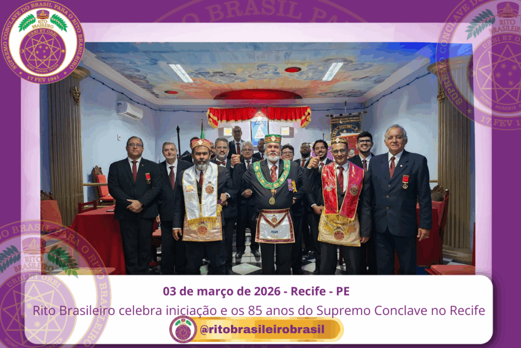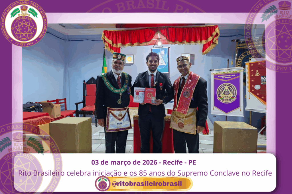 No dia 3 de março de 2026, ao Vale de Recife/PE, o Ilustre e Sublime Capítulo Luís Soares de Lima nº 99, jurisdicionado à 1ª Delegacia Litúrgica do Clima de Pernambuco, realizou Sessão Magna de Iniciação ao Grau 9 – Mestre da Justiça da hierarquia dos Altos Graus do Rito Brasileiro.
