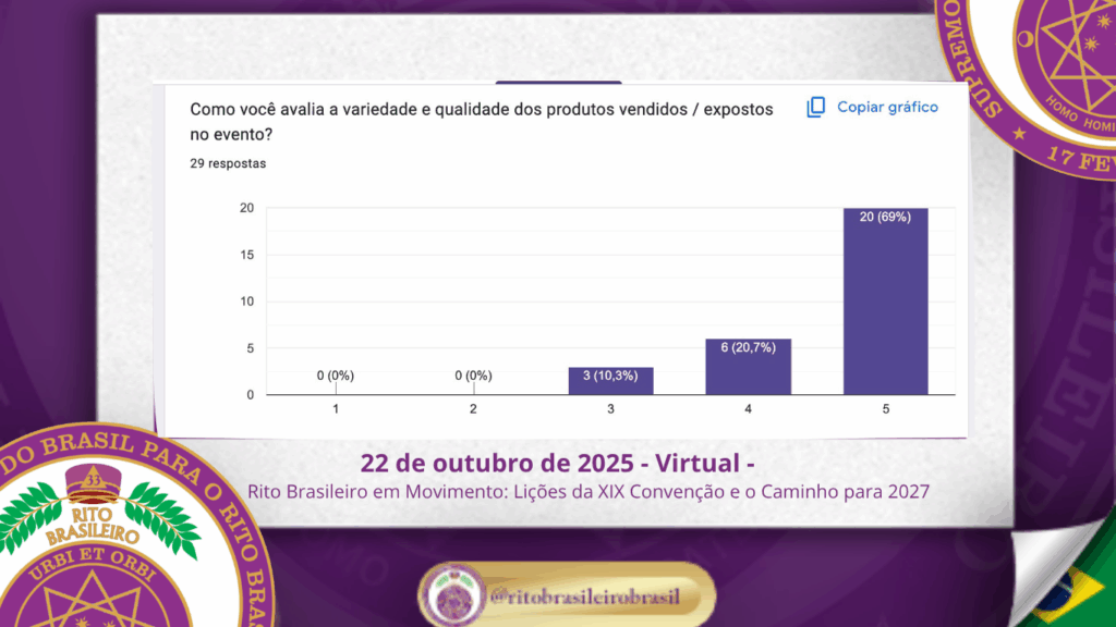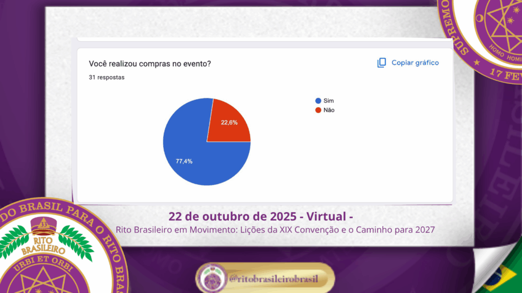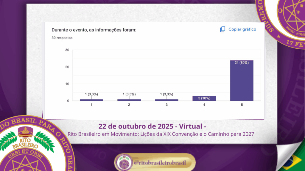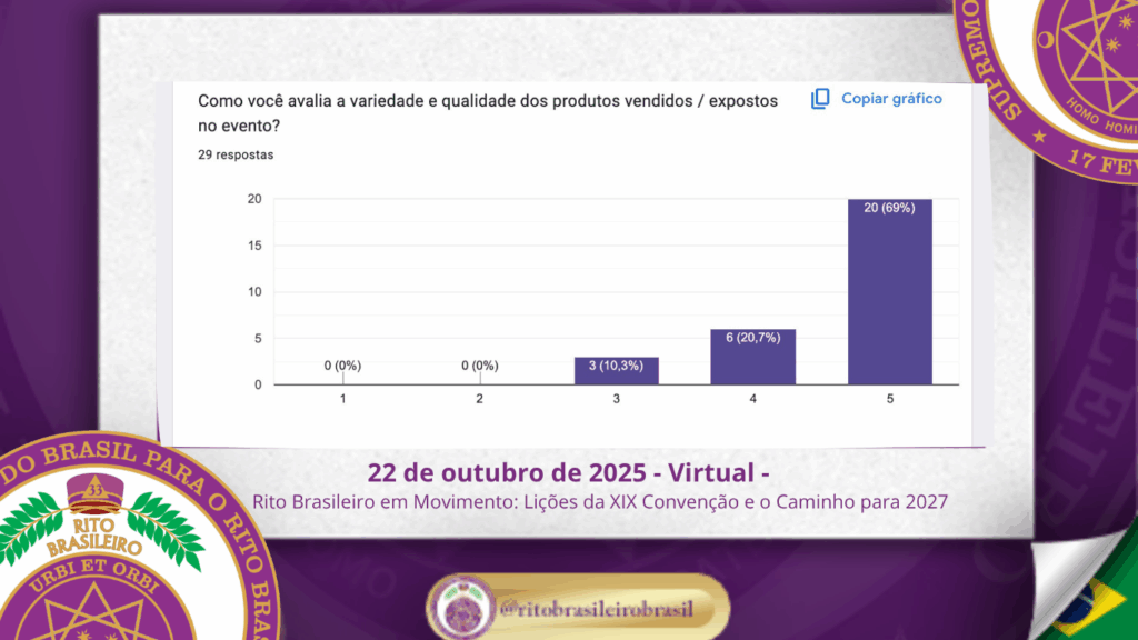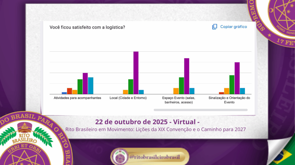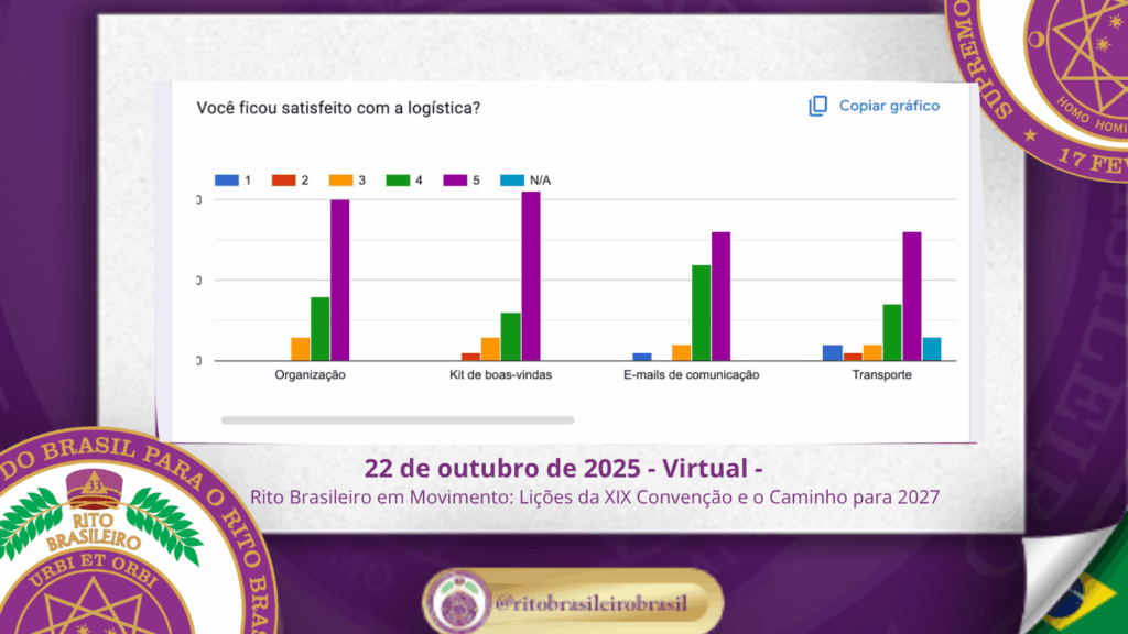 Um dos momentos centrais da reunião foi a apresentação da pesquisa diagnóstica, enviada via Google Forms a todos os irmãos inscritos na XIX Convenção. Essa ação teve como objetivo captar percepções reais da base da Ordem — aqueles que vivenciaram o evento do início ao fim.