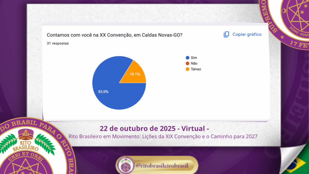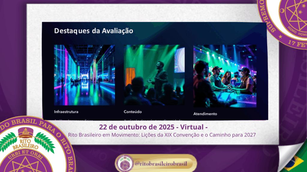 Encerrando a reunião, o Supremo Conclave iniciou oficialmente o planejamento da XX Convenção Nacional do Rito Brasileiro, que será realizada ao Clima de Caldas Novas – GO, em outubro de 2027.