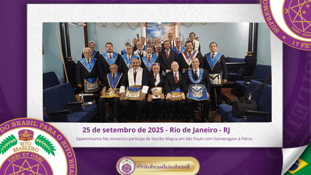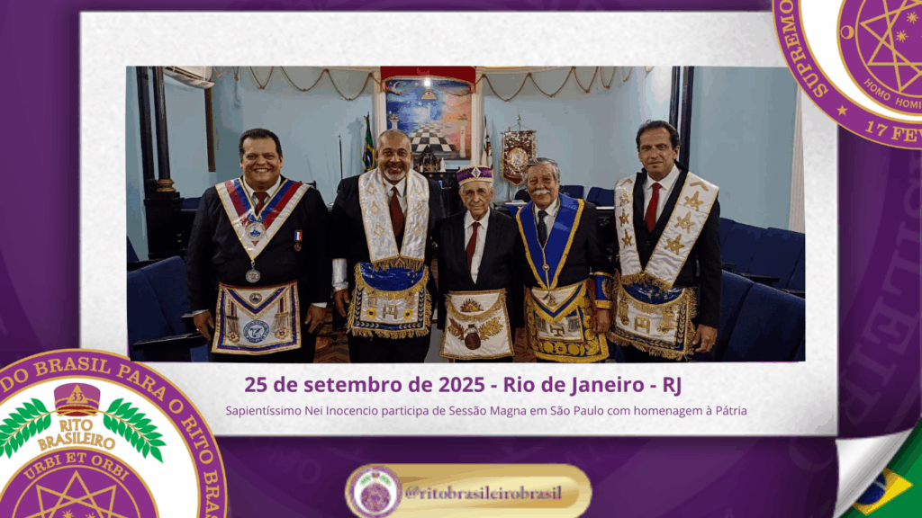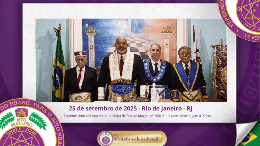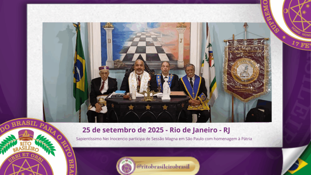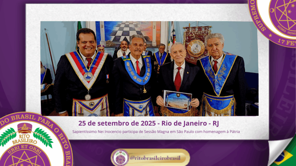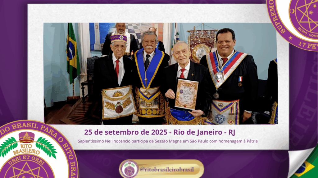 No dia vinte e cinco de setembro de dois mil e vinte e cinco, o Sapientíssimo Grande Primaz Emérito Nei Inocencio dos Santos compareceu à Sessão Magna realizada pela Augusta e Respeitável Loja Simbólica Fé, Esperança e Caridade nº 4344, ao Oriente do Rio de Janeiro.