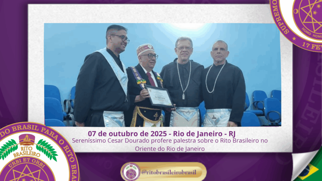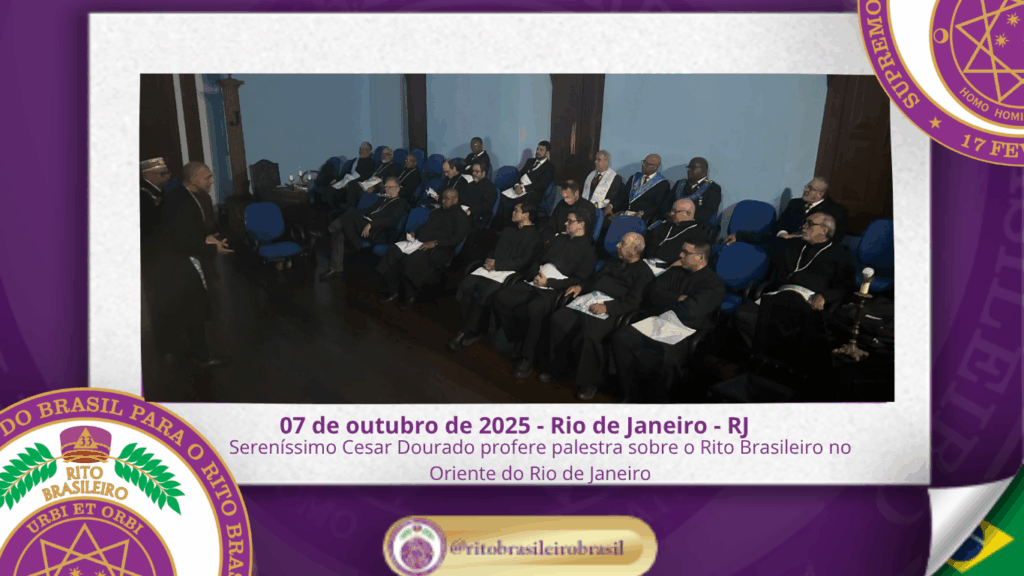 No dia sete de outubro de dois mil e vinte e cinco, às 19 horas e 30 minutos, no Templo nº 8 do Palácio Maçônico do Lavradio, ao Oriente do Rio de Janeiro, o Sereníssimo Irmão Cesar R. D. Dourado, Grande Regente do Supremo Conclave do Brasil, proferiu uma palestra especial com o tema: “História e Filosofia do Rito Brasileiro”, atendendo ao honroso convite da Augusta e Respeitável Loja Simbólica Amizade Fraternal nº 10, reconhecida como Loja Primaz do Rito Moderno no GOB-RJ.