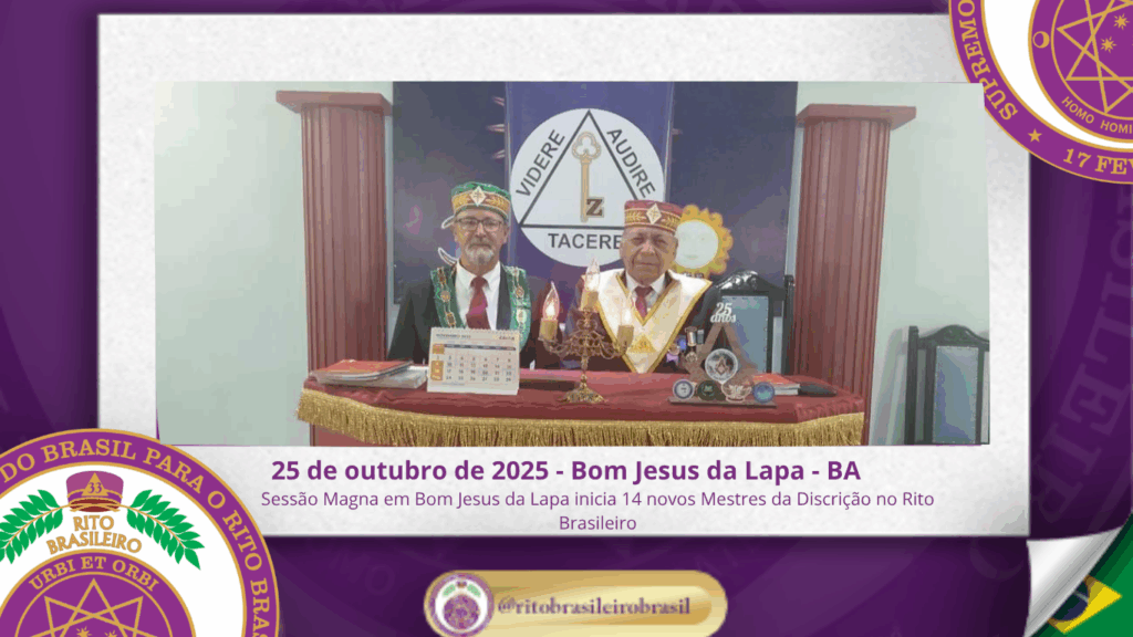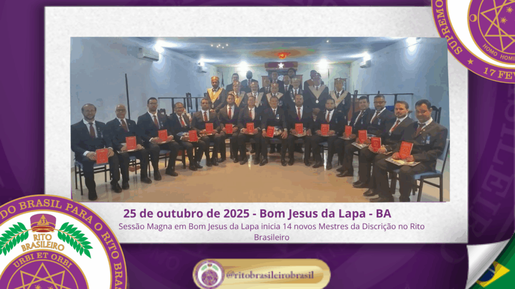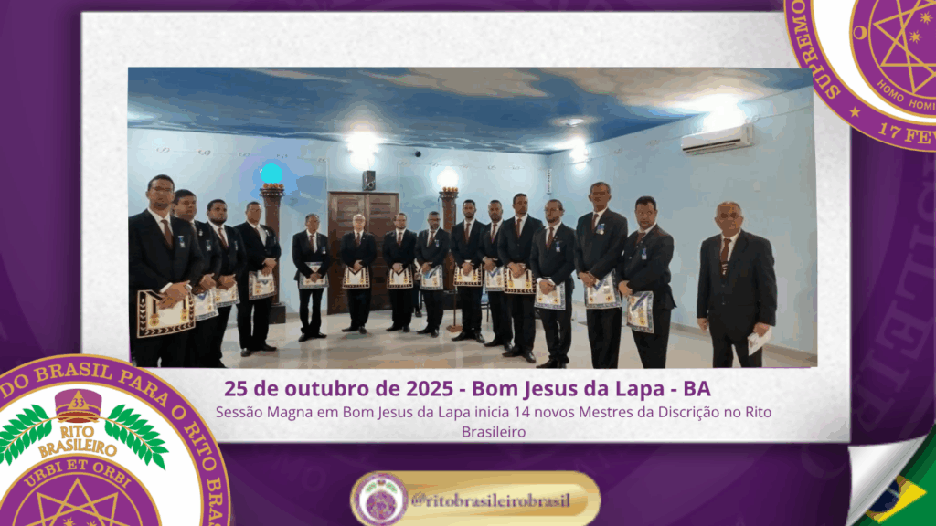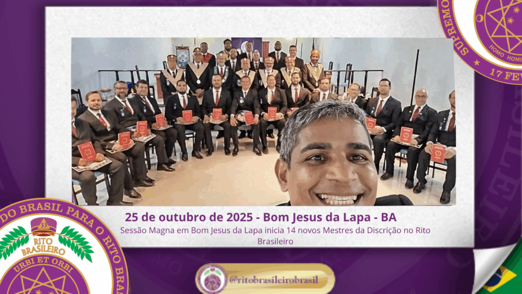 No dia vinte e cinco de outubro de dois mil e vinte e cinco, ao Vale de Bom Jesus da Lapa, Clima da Bahia, o Ilustre e Sublime Capítulo “Edvaldo Ramos de Araújo Júnior nº 141” realizou uma Sessão Magna repleta de Harmonia, Fraternidade e Fidelidade aos princípios da Maçonaria Brasileira, promovendo a iniciação de quatorze novos Ilustres Irmãos ao Grau 4 – Mestre da Discrição.