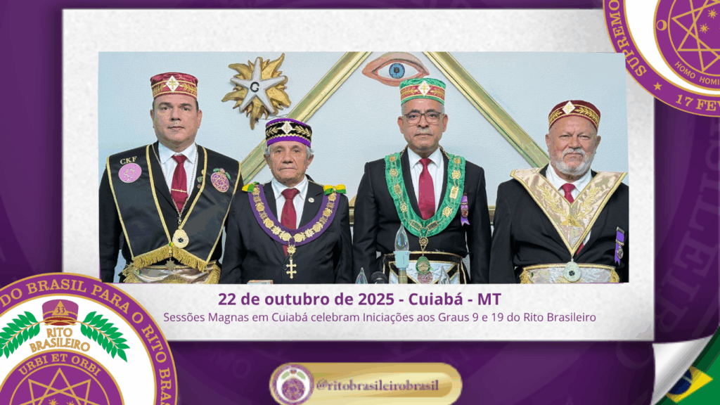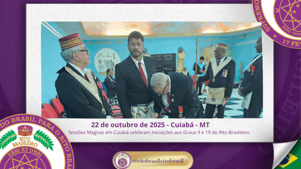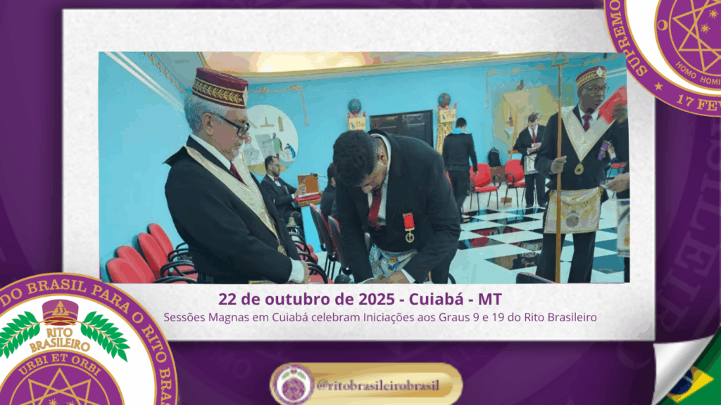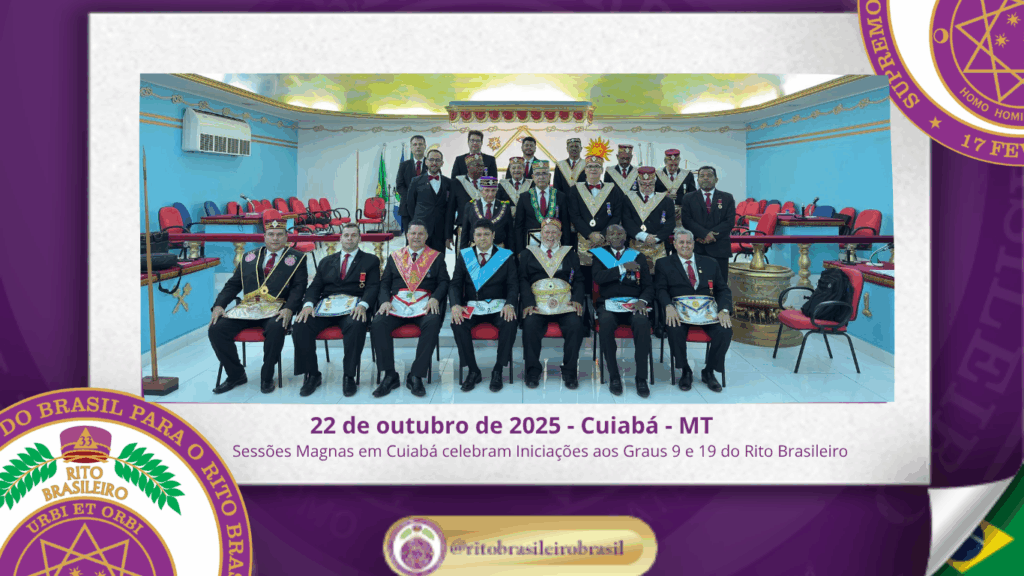No dia vinte e dois de outubro de dois mil e vinte e cinco, ao Clima de Cuiabá-MT, realizaram-se sublimes Sessões Magnas que exaltaram os ideais do Rito Brasileiro e promoveram o contínuo aperfeiçoamento dos Ilustres e Poderosos Irmãos que trilham os Altos Graus Filosóficos.