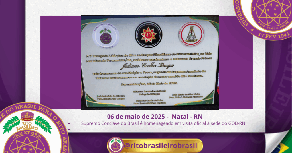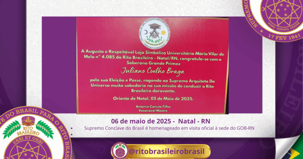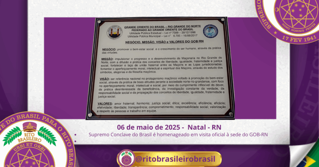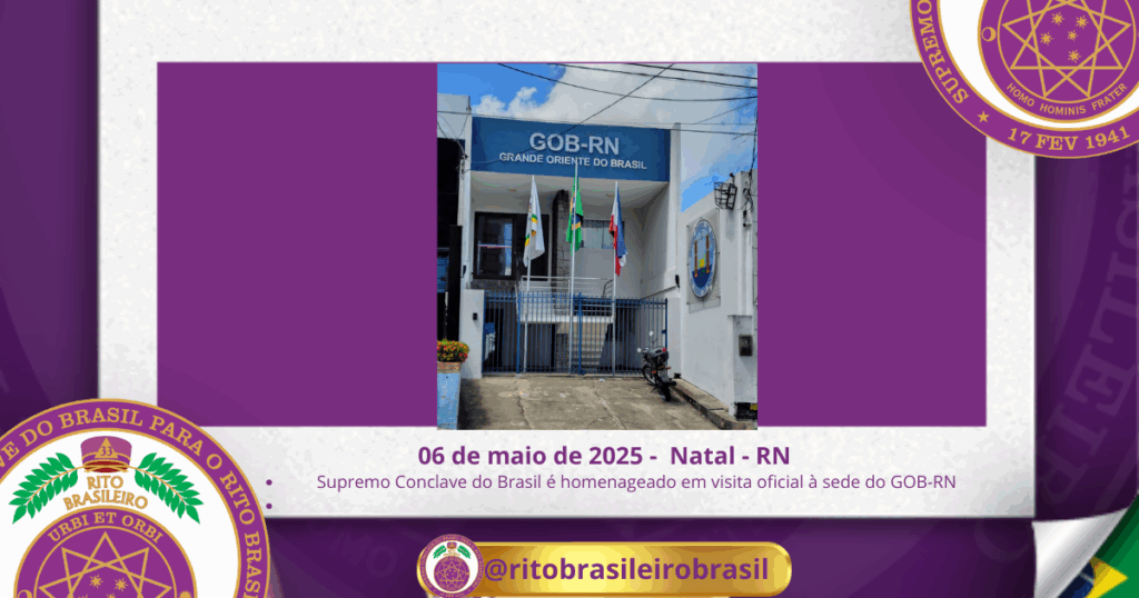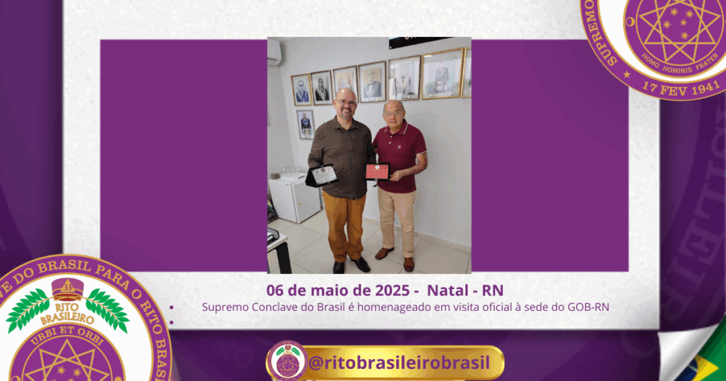 Este momento fraterno e institucional reforça os laços entre o GOB-RN e o Supremo Conclave do Brasil para o Rito Brasileiro de Maçons Antigos, Livres e Aceitos, em prol do fortalecimento da Ordem, da Pátria e da Humanidade.