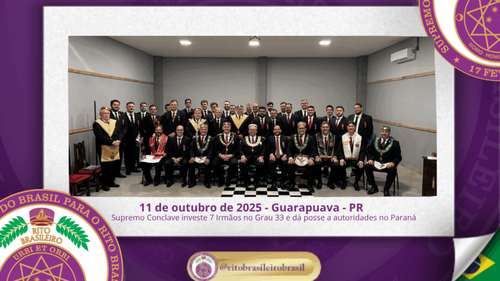 No dia onze de outubro de dois mil e vinte e cinco, em uma histórica Sessão Magna ao Oriente de Guarapuava, no Estado do Paraná, o Supremo Conclave do Brasil promoveu um importante conjunto de ações iniciáticas e administrativas que reafirmam o crescimento e fortalecimento do Rito Brasileiro no Sul do país.