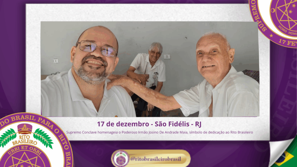 No dia dezessete de dezembro de dois mil e vinte e cinco, retornando do Oriente de Montes Claros – Minas Gerais, o Soberano Grande Primaz do Rito Brasileiro, Juliano Coelho Braga, realizou uma visita de grande significado fraterno ao Oriente de São Fidélis – Estado do Rio de Janeiro, para encontrar-se com o Poderoso Irmão Josino De Andrade Maia, um dos mais dedicados obreiros do Rito Brasileiro em plena atividade.