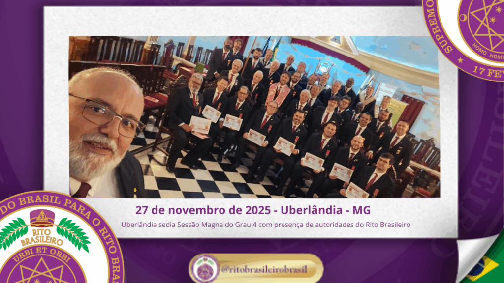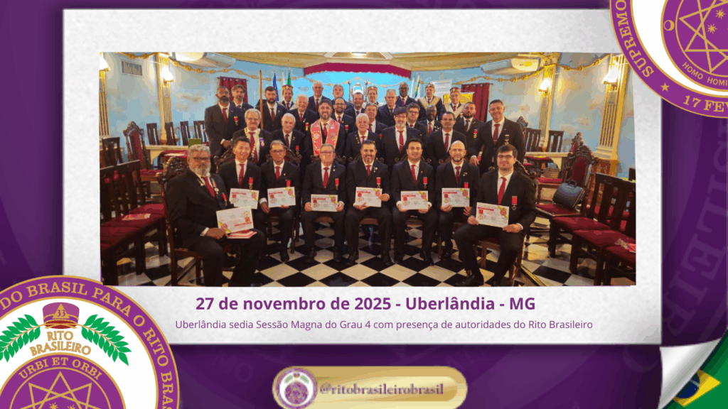 No dia 27 de novembro de 2025, o Ilustre e Sublime Triângulo nº 78, ao Vale de Uberlândia/MG, promoveu uma marcante Sessão Magna de Iniciação ao Grau 4 – Mestre da Discrição, acolhendo novos Irmãos aos Altos Graus do Rito Brasileiro de Maçons Antigos, Livres e Aceitos.